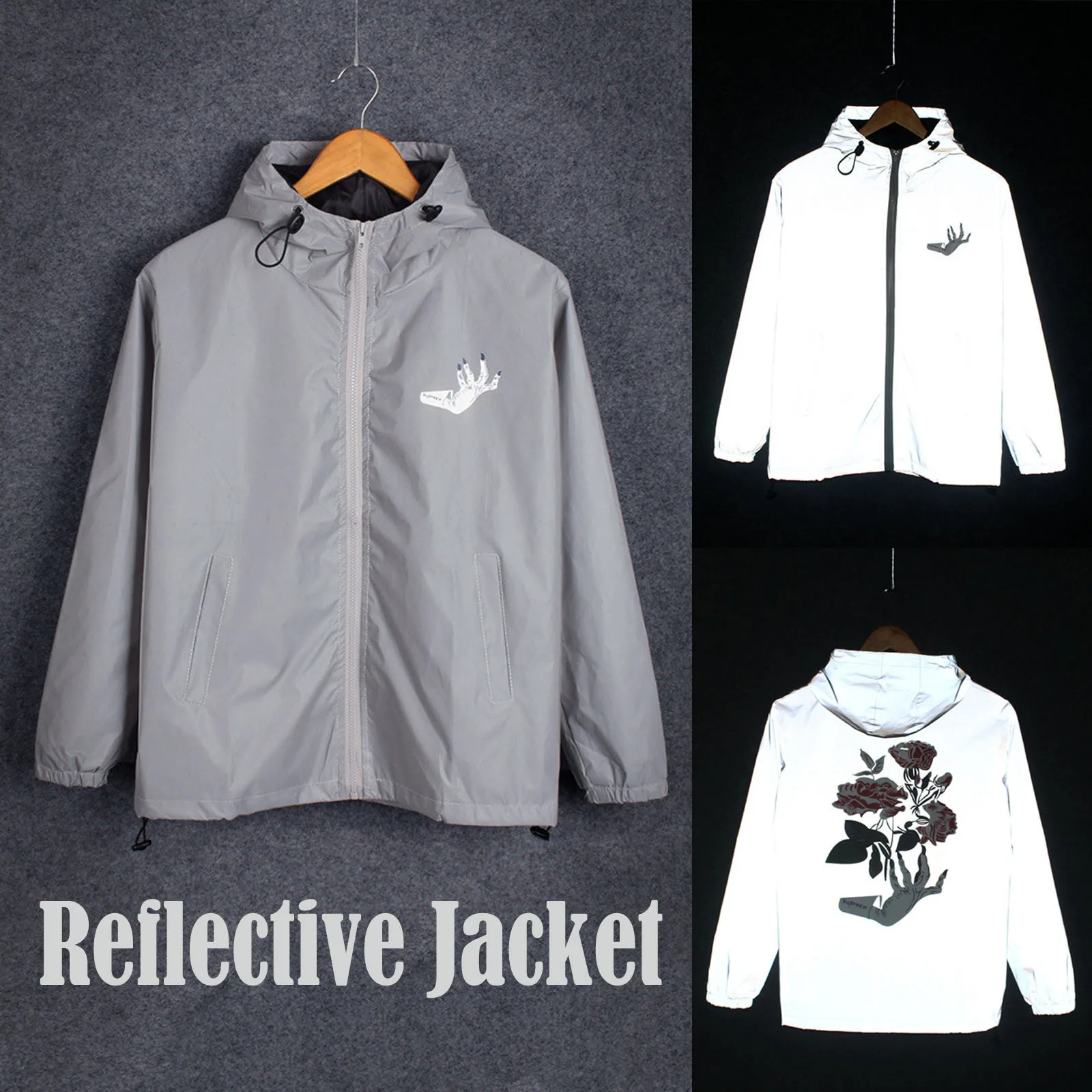 Модное светоотражающее пальто для мужчин и женщин, однотонная повседневная куртка, осенняя светящаяся ветровка в стиле Харадзюку, тренчи, куртки 2021