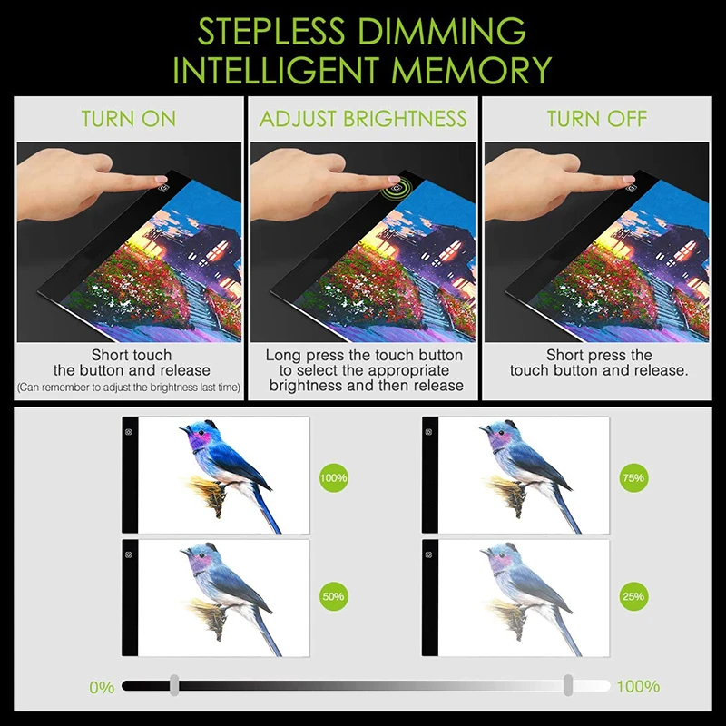 Световой планшет со светодиодной подсветкой с плавным затемнением светодиодный алмазной живописи, художественных работ, световой короб, цифровые планшеты для рисования, письма