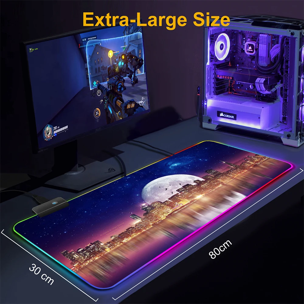 Игровой коврик для мыши Sunset City, HD обои, RGB, размер XXL, наст...