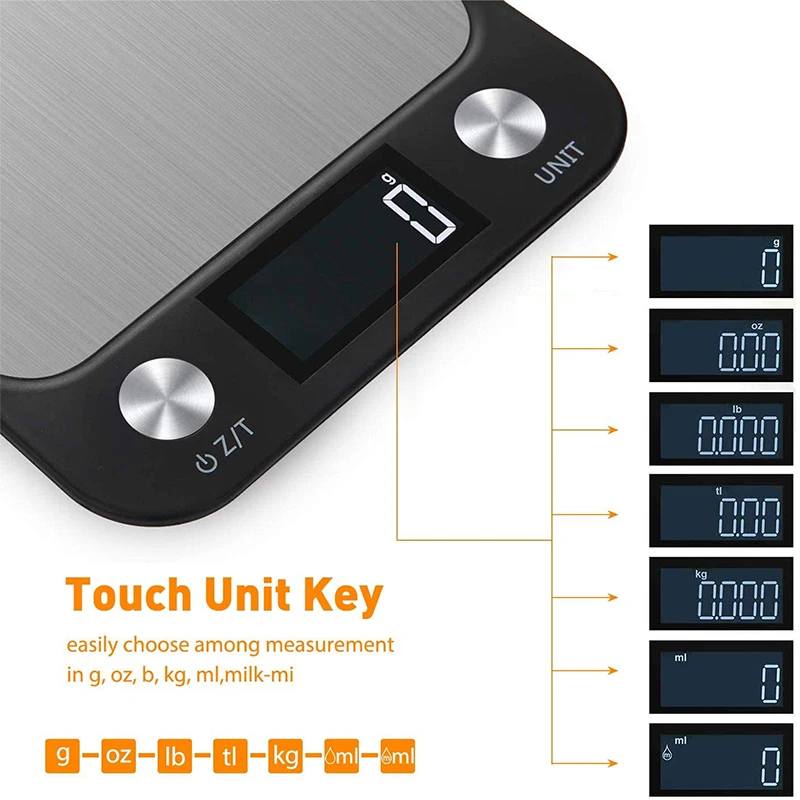 Особенности:Емкость 10000 г с точностью 1 г, датчик высокой точности гарантирует, что вы получите точный результат.Металлическая сенсорная кнопка управления.Ультратонкий дизайн, Матовая нержавеющая сталь для взвешивания.Автоматическое выключение после 180 секунд бездействия.Большой ЖК-дисплей с четкой индикацией белого цвета.Компактный и хорошего качества, дуговые края для безопасного использования.7 единиц для преобразования: g, oz, lb, tl, kg, water ml, milk mlМногофункциональные весы для взвешивания молочек, порошков, овощей, фруктов, яиц, ювелирных изделий, чая, лекарственных материалов и т. Д.Особенности функции нулевой очистки, функции тары, функция подсказки перегрузки, функция подсказки низкой мощности и т. д.Характеристики: