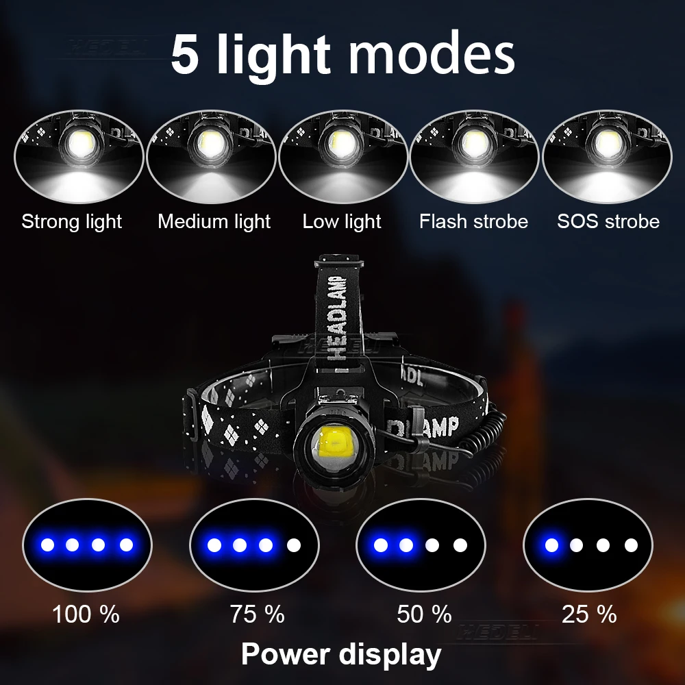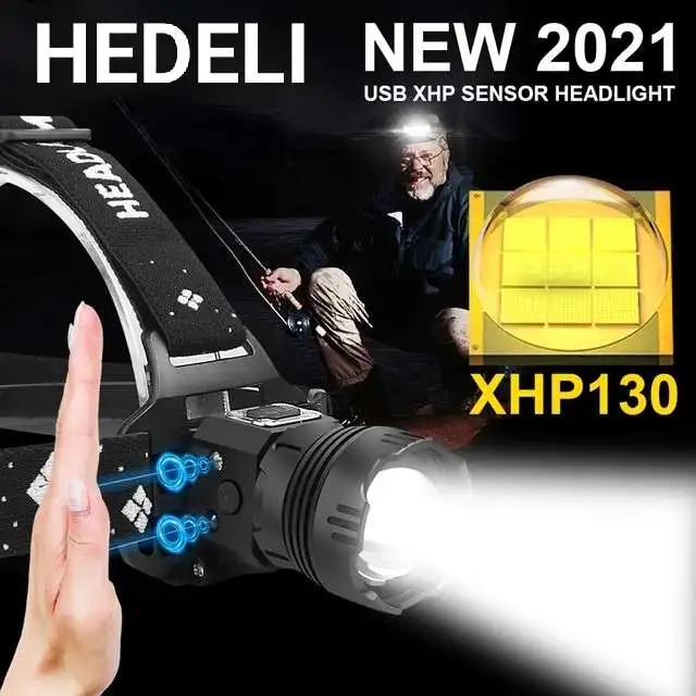 Новинка 2021, самый мощный светодиодный налобный фонарь XHP130, перезаряжаемый налобный фсветильник рь с ИК-датчиком, Usb, налобный фонарь для кемпинга XHP90, налобный фонарь для рыбалки