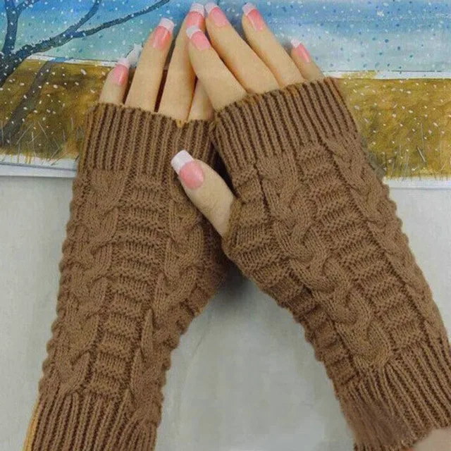 Вязаные перчатки без пальцев с длинным рукавом, зимние теплые шерст...