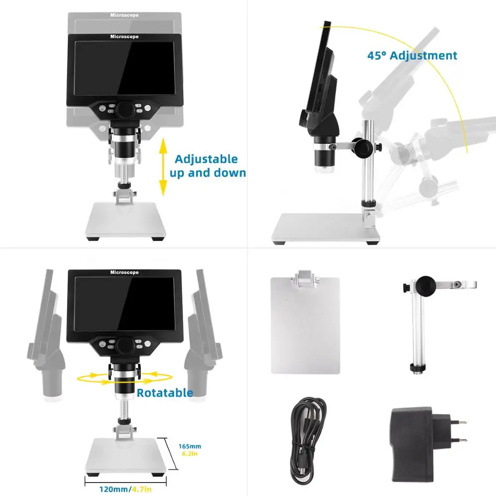 Преимущество 1:Вертикальные микроскопы (G600) имеют серьезный недостаток: из виду легко упустить детали предметов за счет отражения. Поскольку они используются во многих приложениях, таких как припой на печатных платах, обозначение модели некоторых крошечных чипов и металлов, которые требуют четкого обзора деталей предметов.G1200 специально решает эту проблему. Это цифровой микроскоп с регулируемым углом, который решает проблему высокого отражения. Это большой опыт в отрасли технического обслуживания электроники, и важно отметить, что эта машина имеет большое рабочее пространство, чем другие. Очень удобно использовать под этим микроскопом пинцет, Электрический паяльник и другиеПреимущество 2:Большинство других микроскопов-это двухступенчатое увеличение, либо слишком большое, либо слишком маленькое. Трудно найти подходящий вид.Это цифровой микроскоп с непрерывным увеличением, и он имеет широкий спектр опций просмотра по сравнению с другими микроскопами, начиная от 1 до 1200 кратного увеличения, И всегда находите подходящее множество для вас.