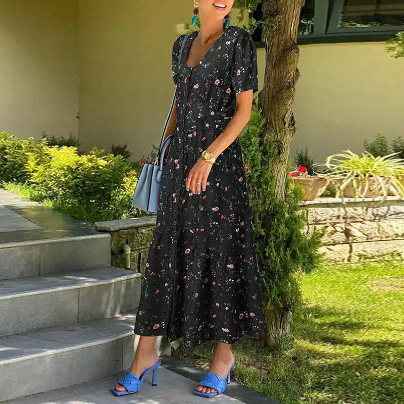 Повседневный Длинный Сарафан Celmia с коротким рукавом 2022, модное...