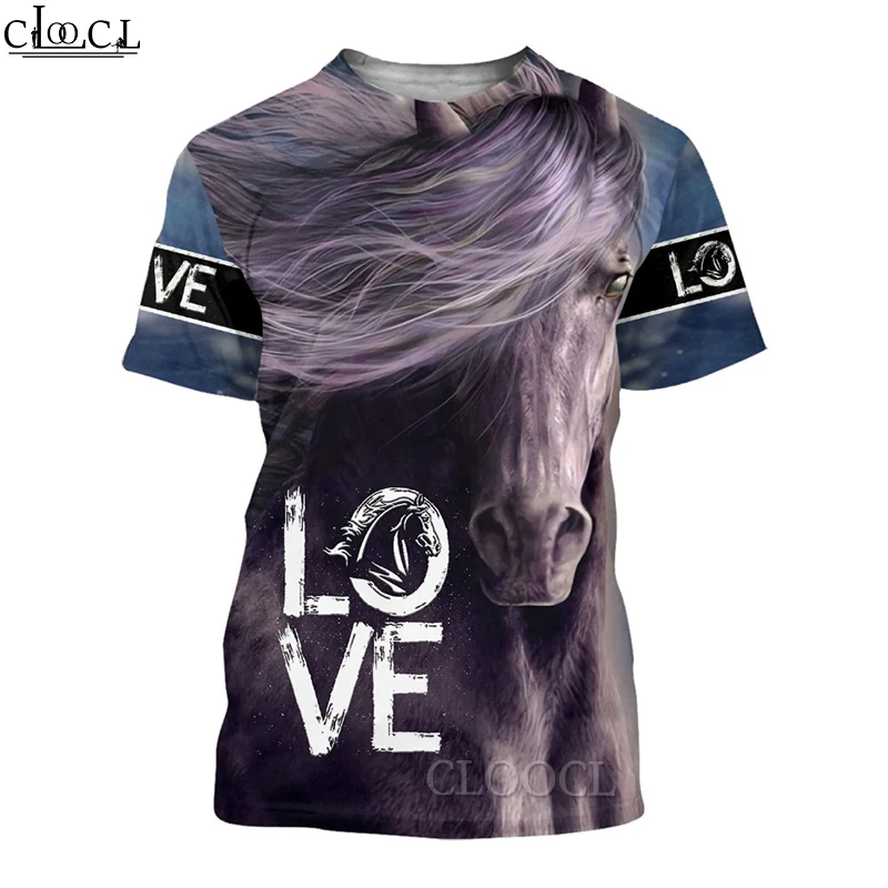 Летняя футболка унисекс, новейшая популярная футболка с 3D принтом Love Horse, футболка большого размера Harajuku, женская и Мужская Уличная футболка с коротким рукавом, пуловеры