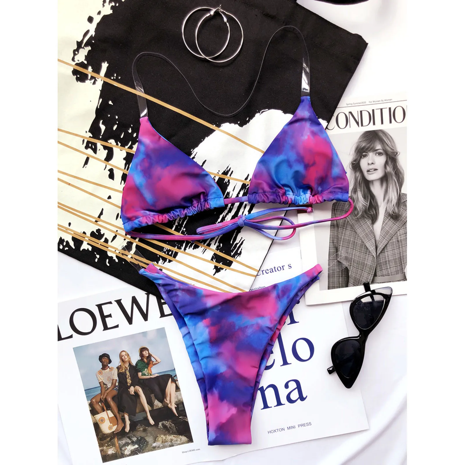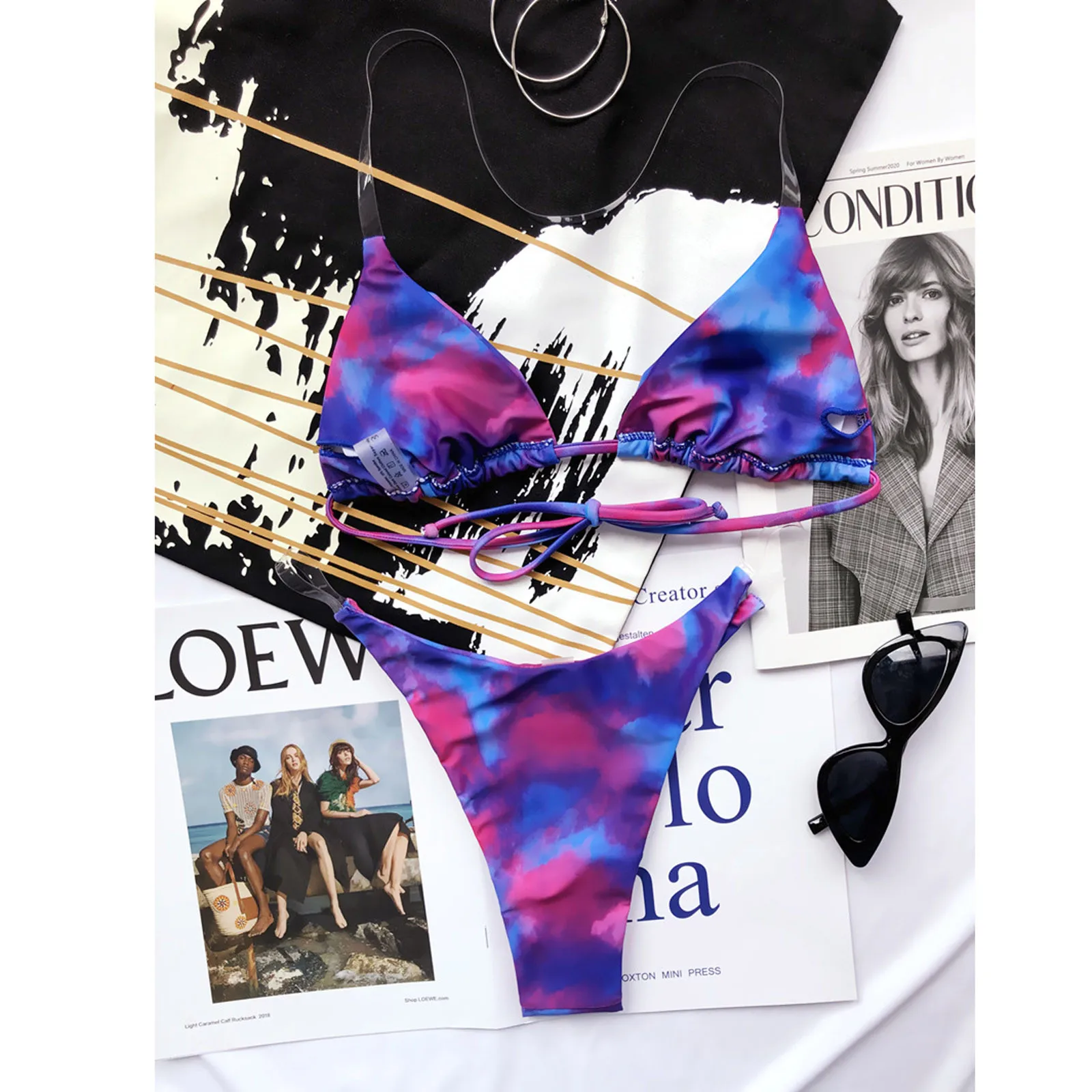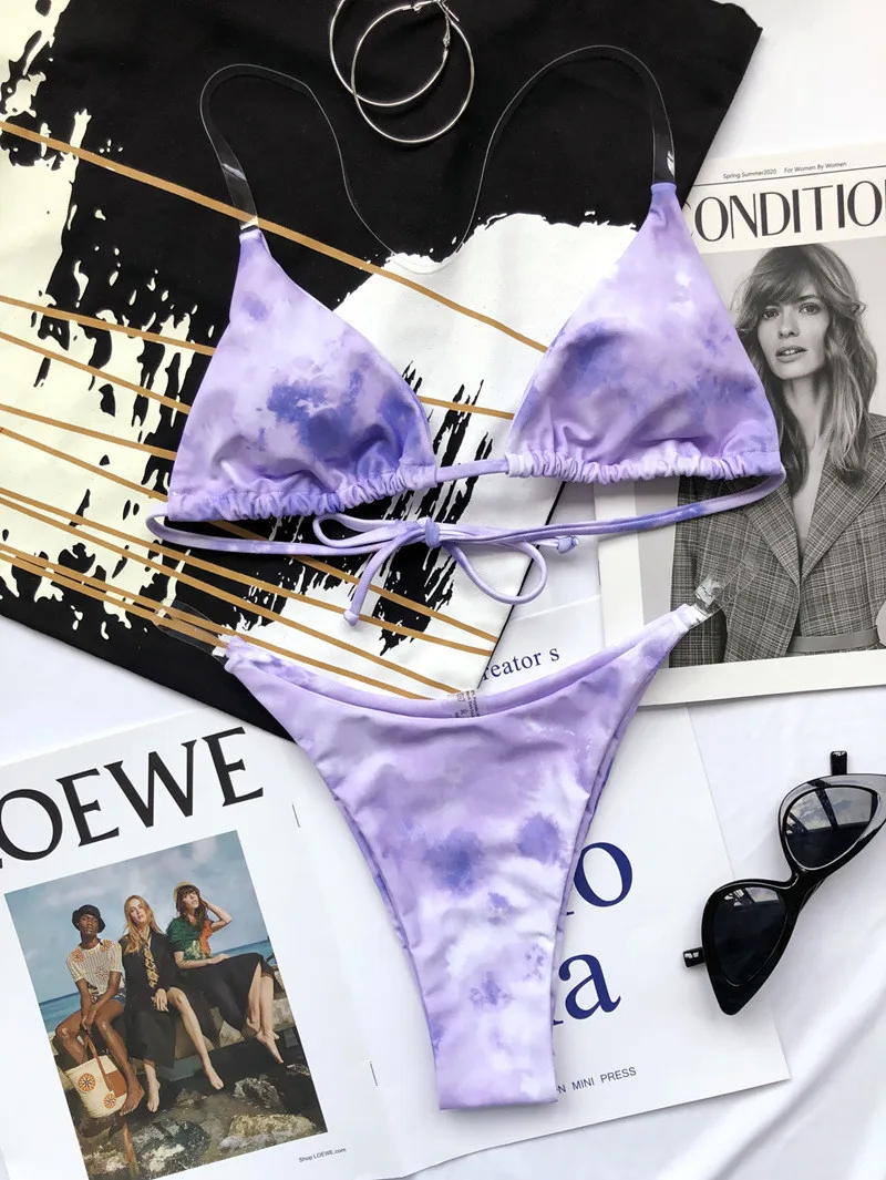 Прозрачное Бикини 2021, женское сексуальное градиентное бикини с галстуком-краской, купальник с пуш-ап, купальный костюм, пляжная одежда