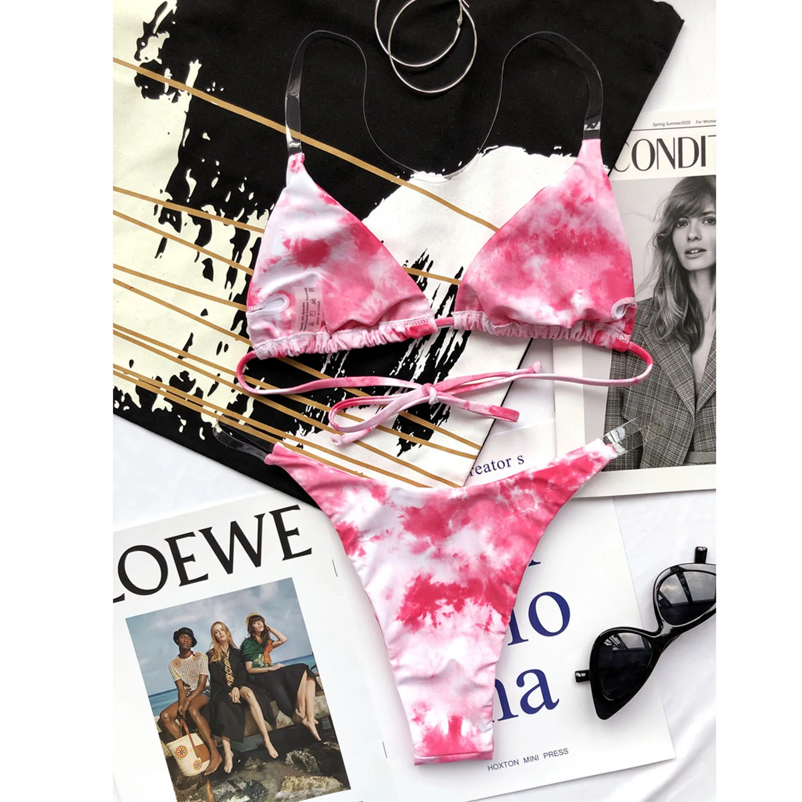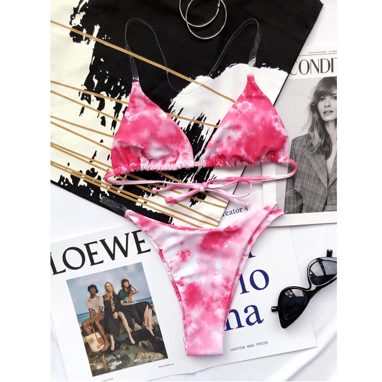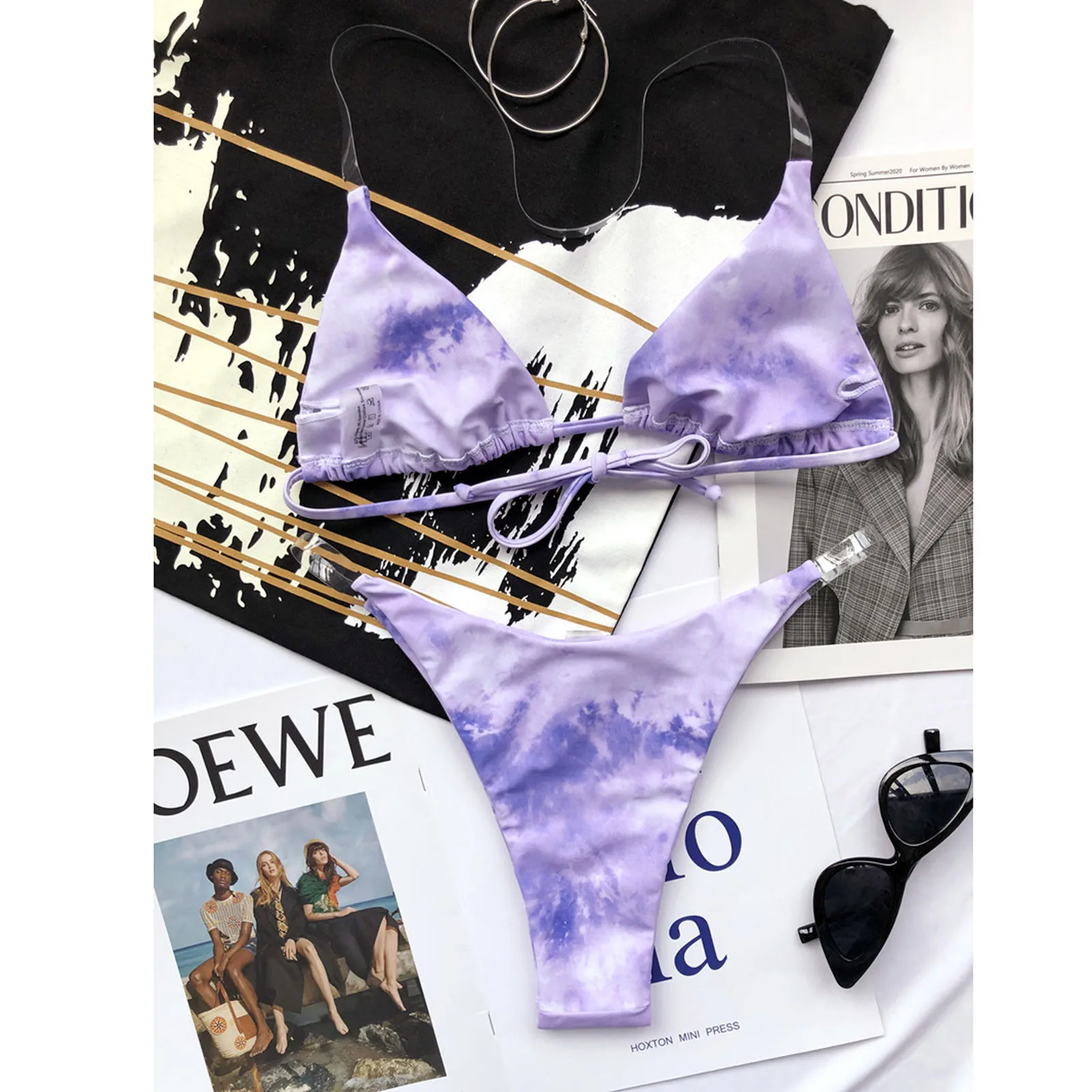 Прозрачное Бикини 2021, женское сексуальное градиентное бикини с галстуком-краской, купальник с пуш-ап, купальный костюм, пляжная одежда