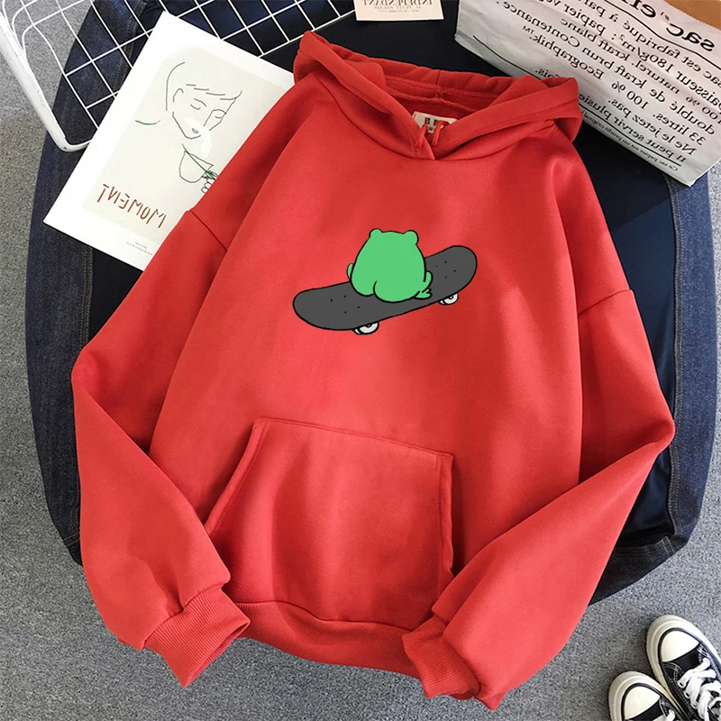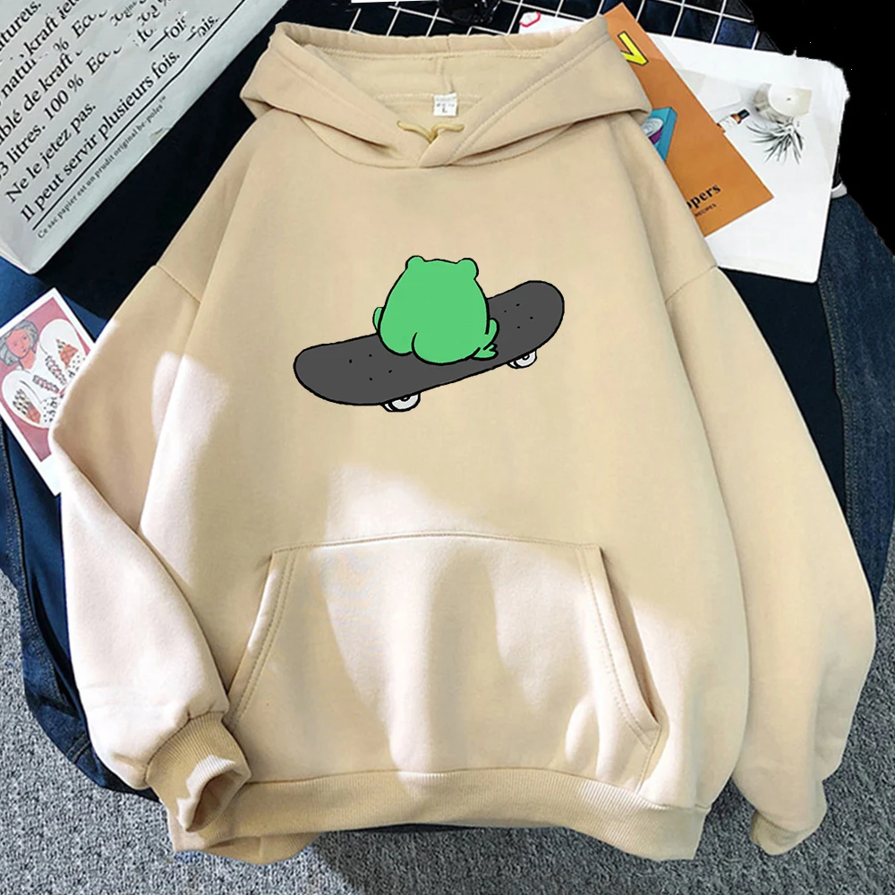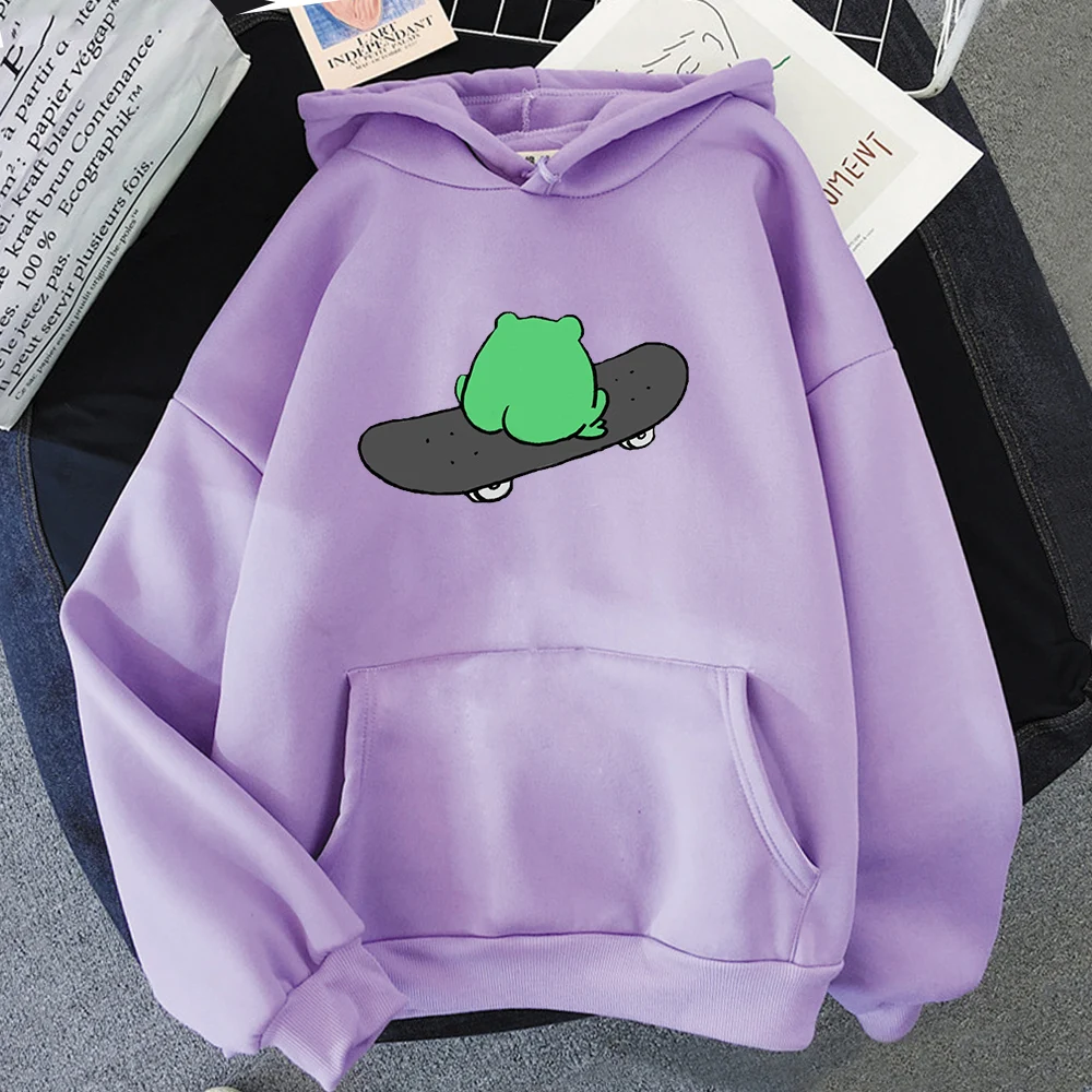 Свитшот женский в стиле Харадзюку, милое эстетическое худи с лягушкой для скейтборда, Повседневный пуловер размера плюс размера, одежда на весну-осень