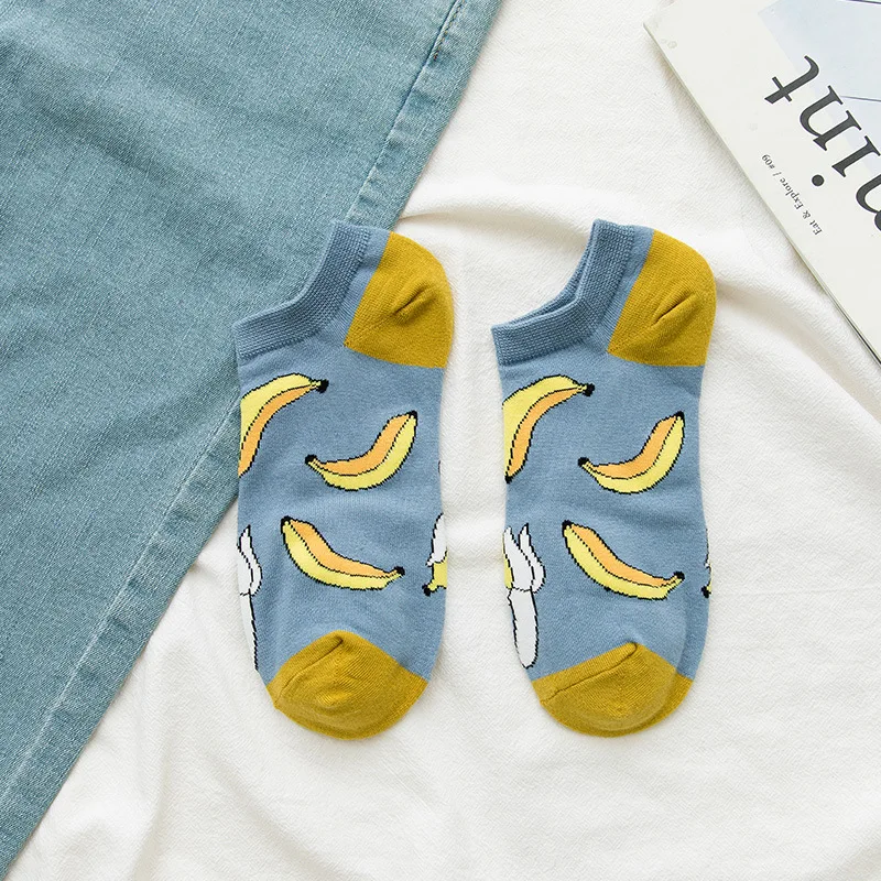 Носки женские короткие, разноцветные, из хлопка, с фруктами, банано...