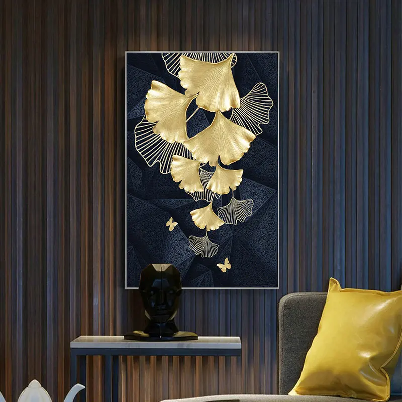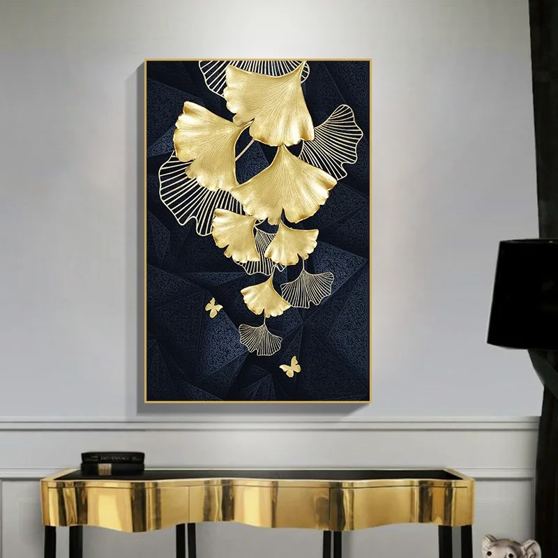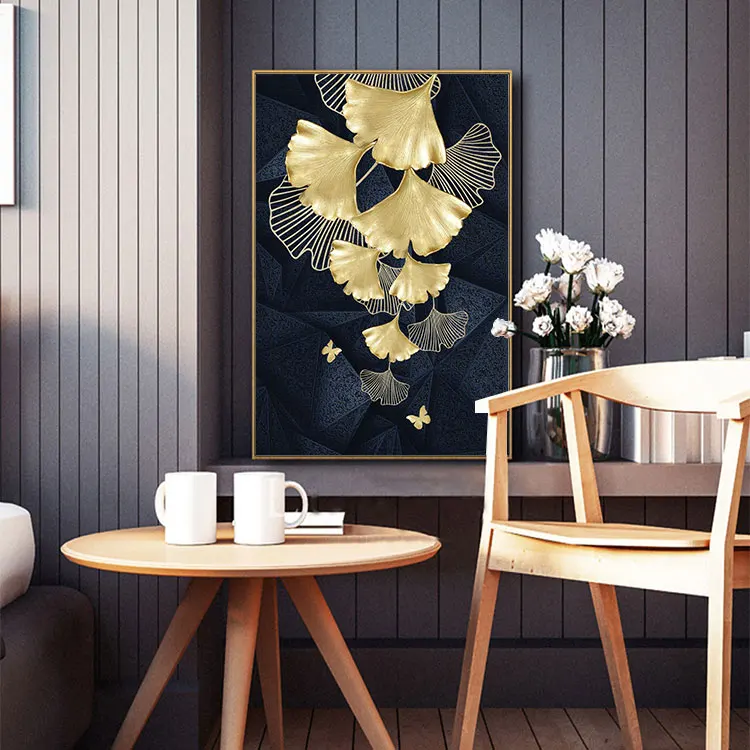 Золотые листья гинкго, Современная позолоченная декоративная картин...