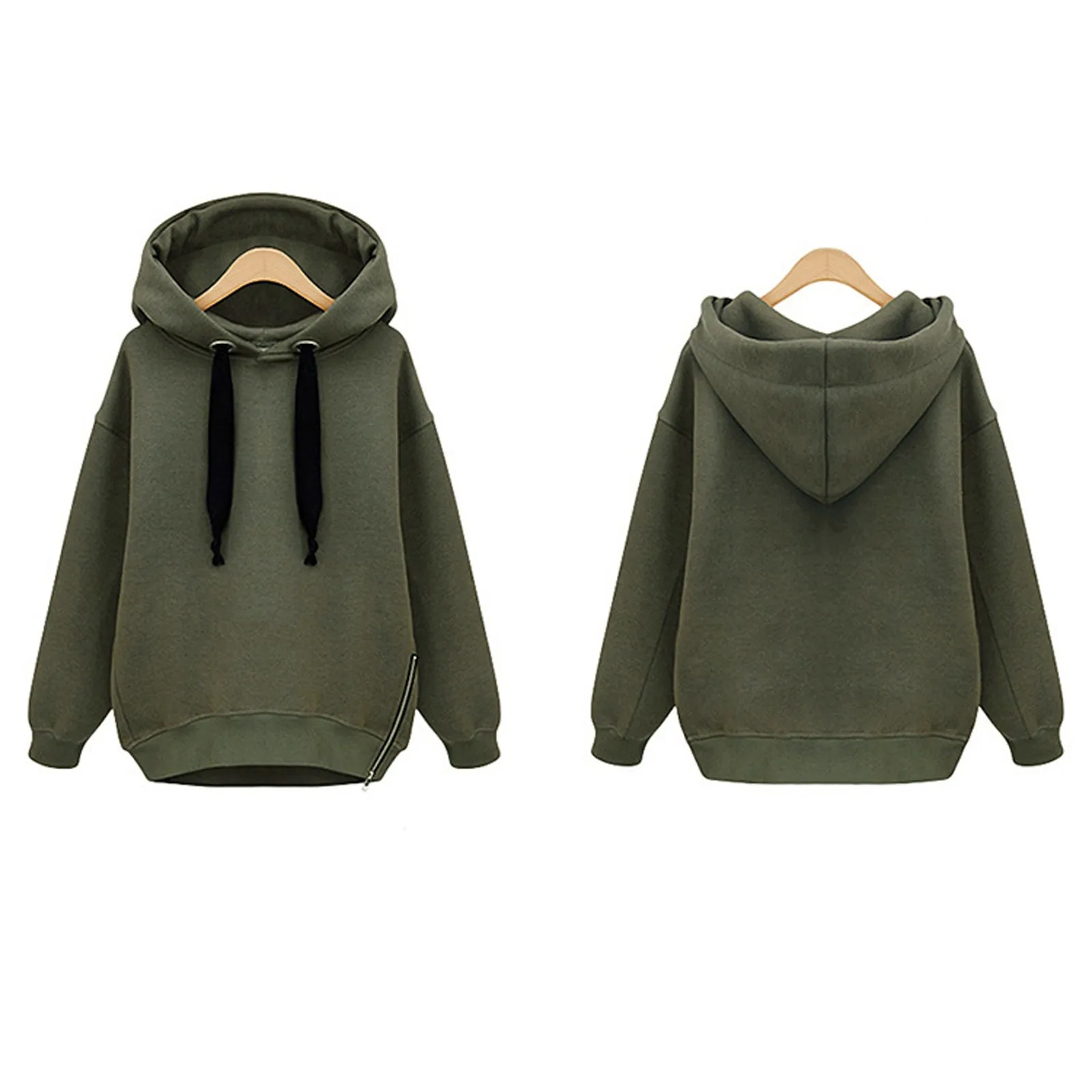 Женская толстовка с капюшоном, зимняя теплая однотонная плюшевая толстовка средней длины с длинным рукавом, 40 #, Свитшот Женский