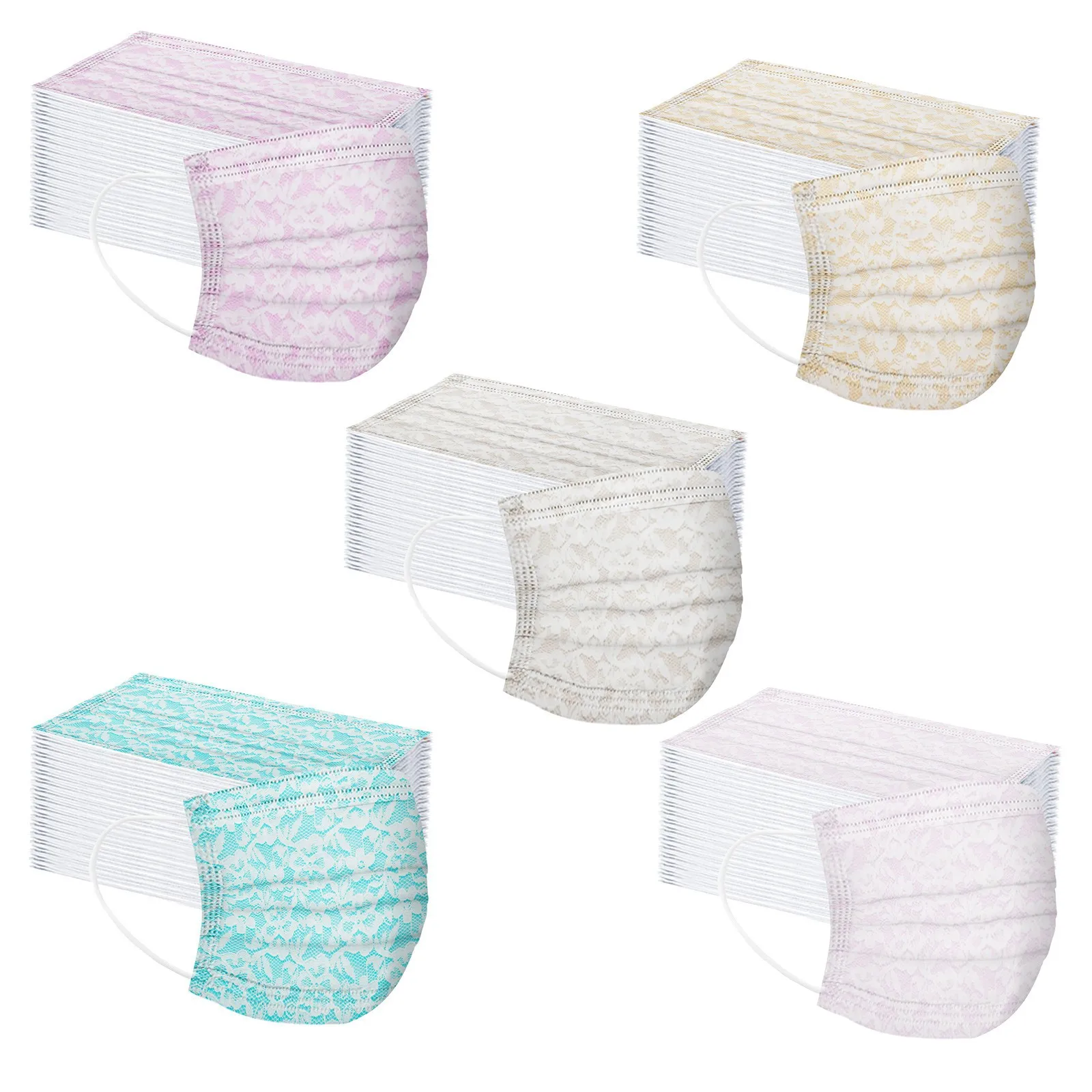 Маска унисекс для женщин и мужчин, одноразовая маска для лица с кружевным принтом, противовирусная противопылевая маска, трехслойная маска с петлями для ушей