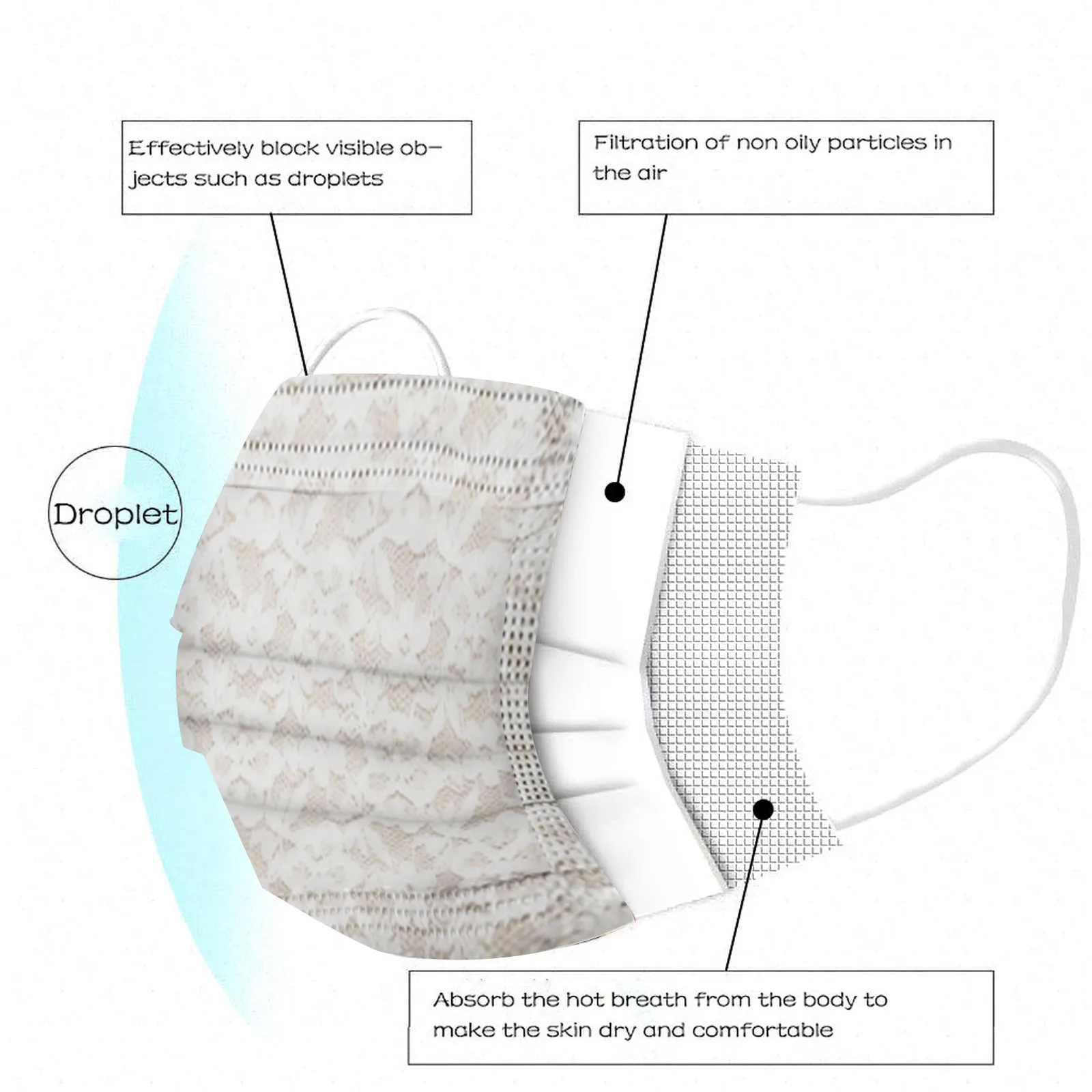 Маска для лица одноразовая с кружевным принтом, 3 слоя, дышащая, с ...