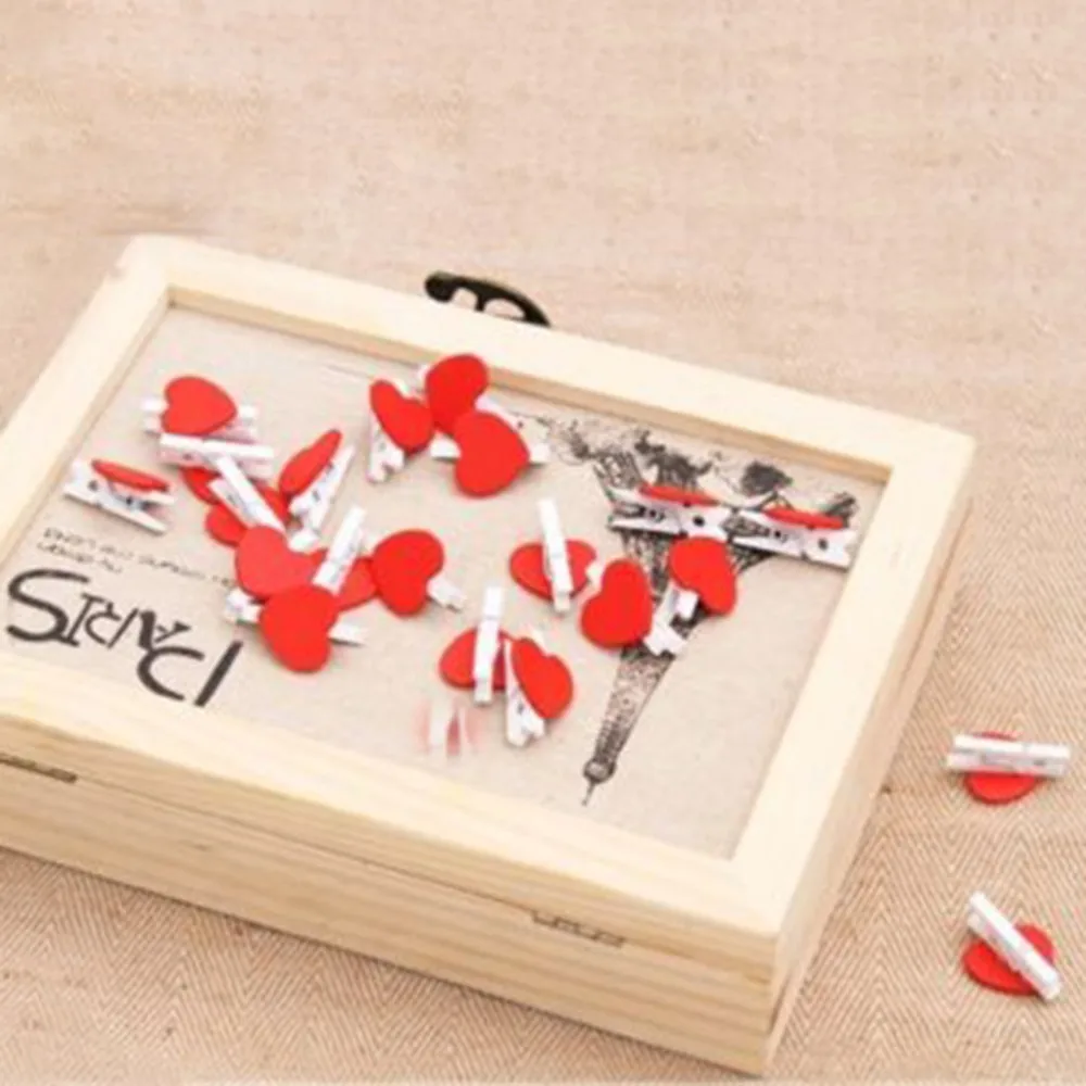 20шт.упак. мини сердце любовь деревянная одежда фото бумажная прищепка заколка для рукоделия открытка зажимы домашнее свадебное украшение