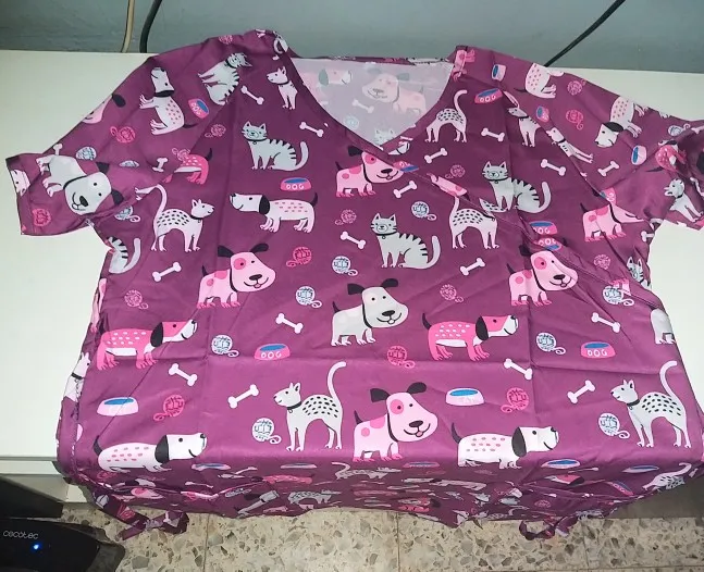 Футболка женская с цветочным принтом, топ с карманом для медсестры, с коротким рукавом и V-образным вырезом, мультяшная одежда для работы медсестры, 40 #