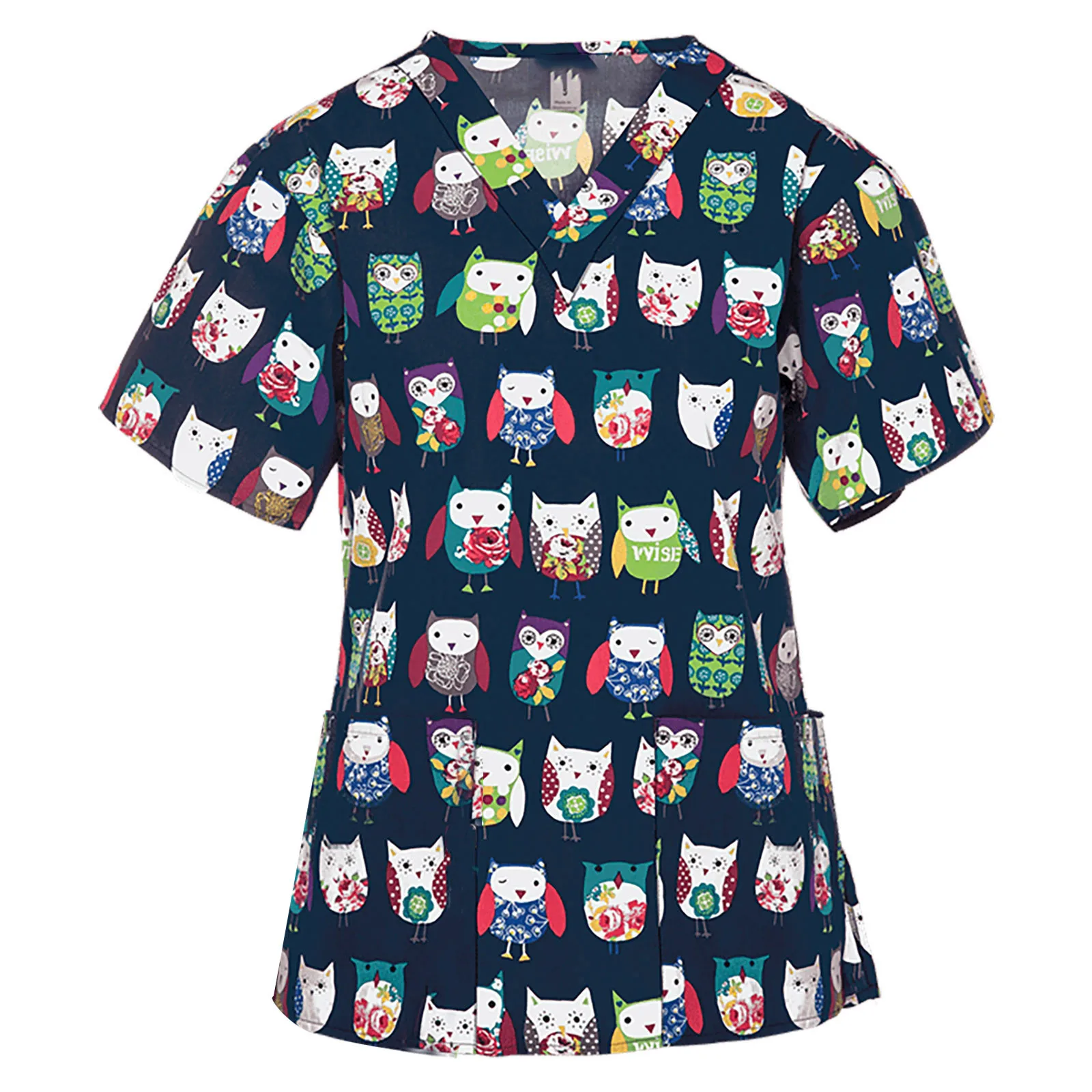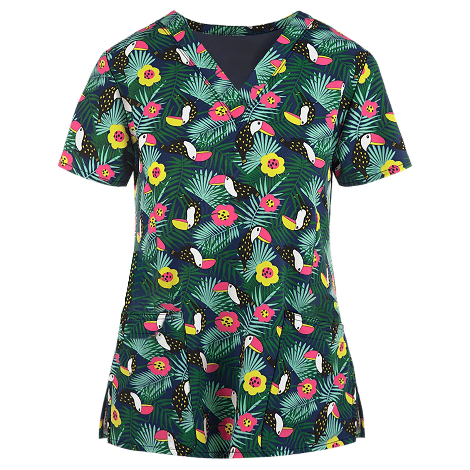 Женская футболка с цветочным принтом 40 #, топы с коротким рукавом и V-образным вырезом, Рабочая форма медсестры, топ с карманами на День Благодарения, одежда для медсестер
