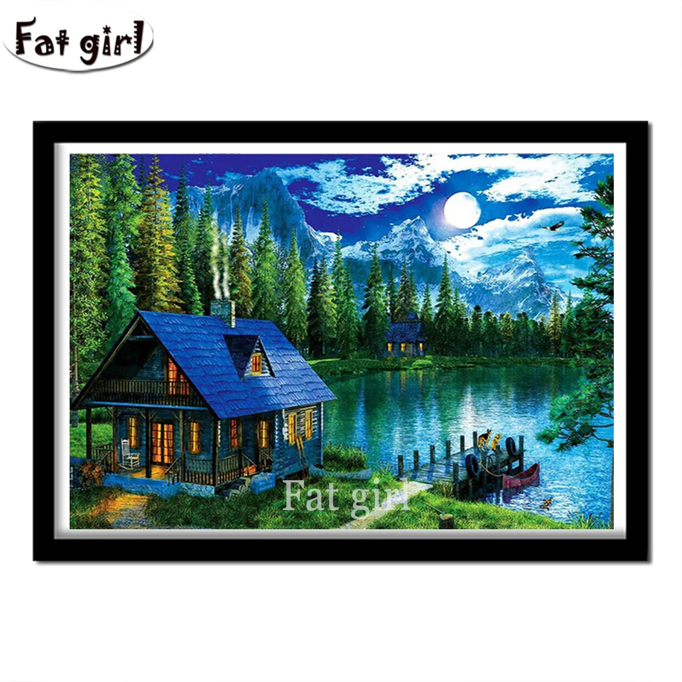 5D алмазная Картина Пейзаж озеро шаль сельская картина Diy Алмазная мозаика полная дрель вышивка круглые стразы новый продукт