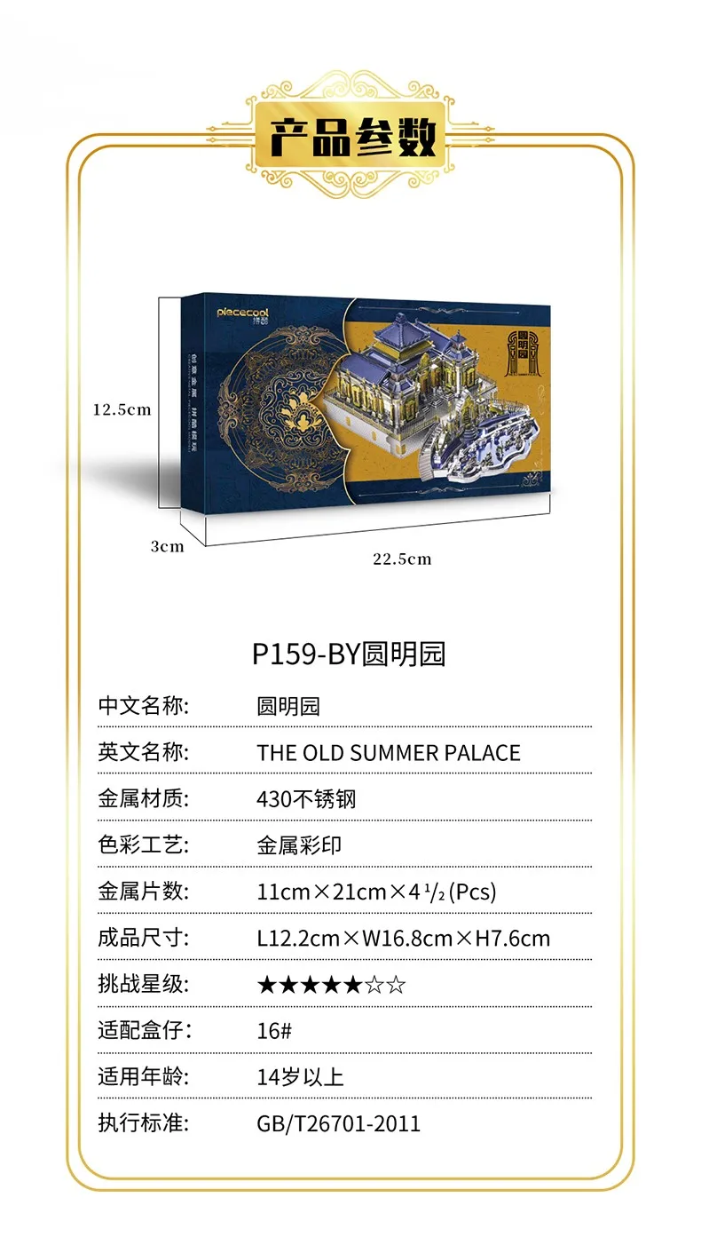 Металлический 3D-пазл Piececool, набор моделей для сборки старого Летнего дворца, Пазл сделай сам, Подарочные игрушки для детей