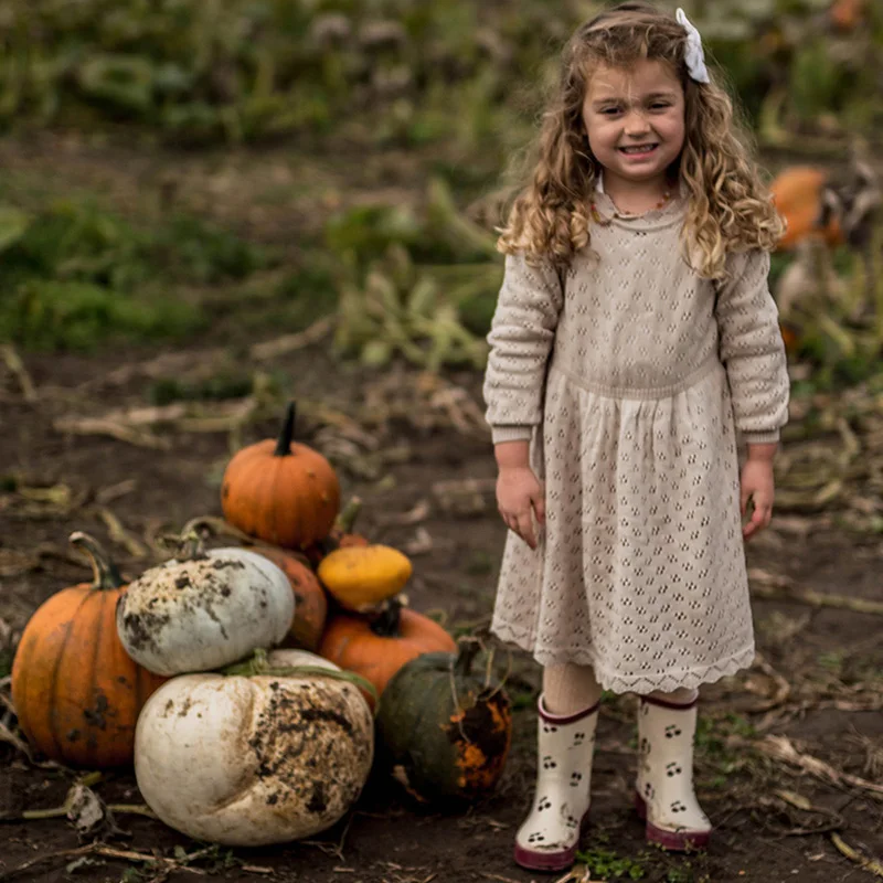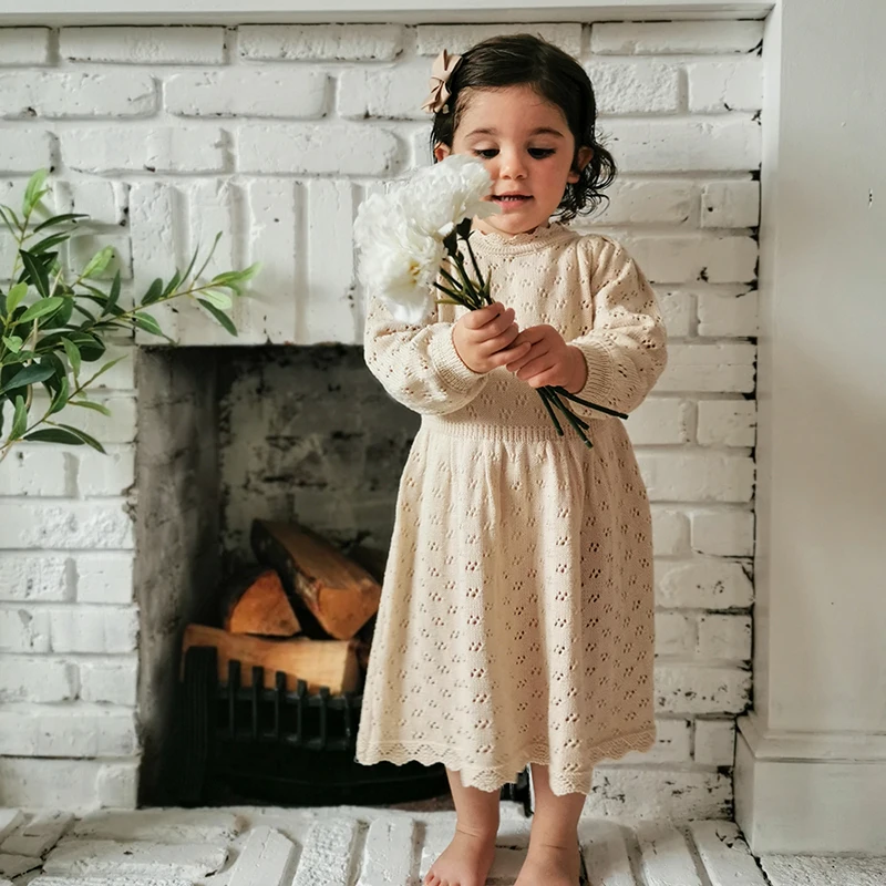 Вязаное шерстяное платье для девочек, новинка 2020, стильные осенне-весенние платья для девочек, детское платье с длинными рукавами и вырезами
