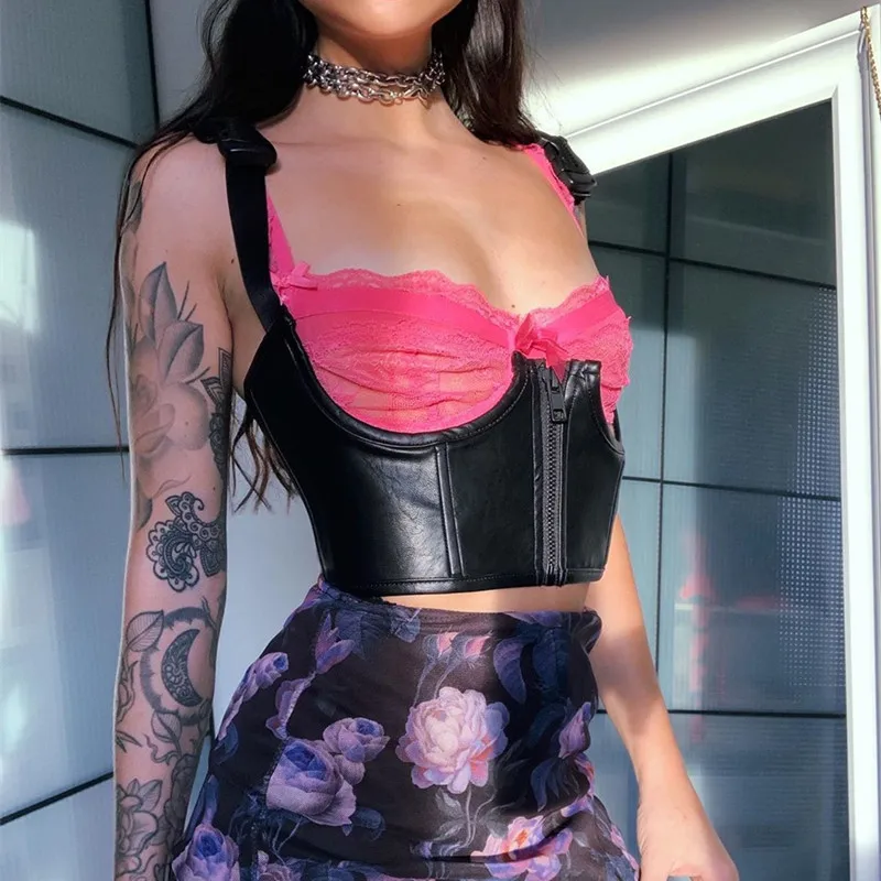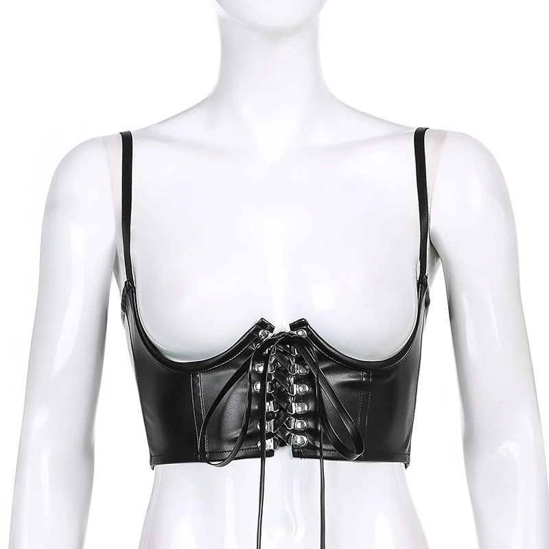Новинка 2021 Готический корсет из искусственной кожи на бретельках женский укороченный топ на шнуровке в стиле панк Корректирующее белье на бретельках бюстье топы для женщин корсет корсет для талии