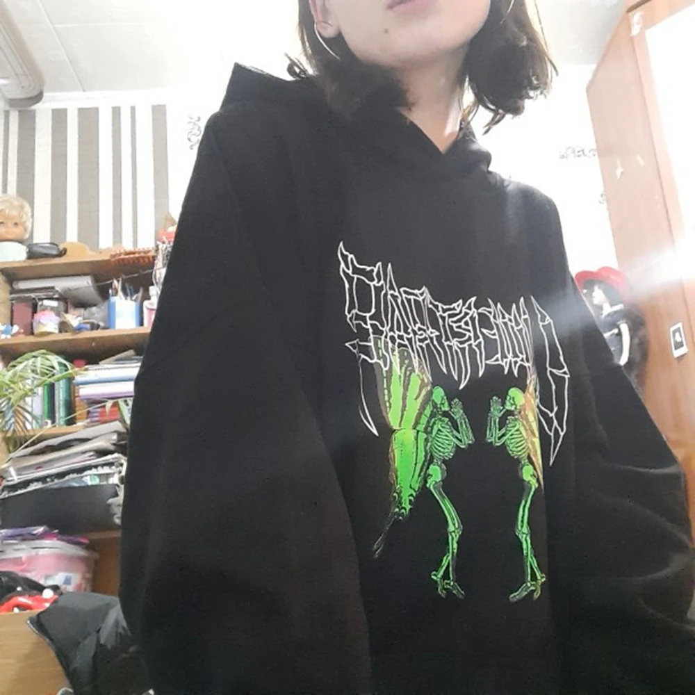 Готическая уличная одежда, пуловер с бабочкой и скелетом, свитшот, ...