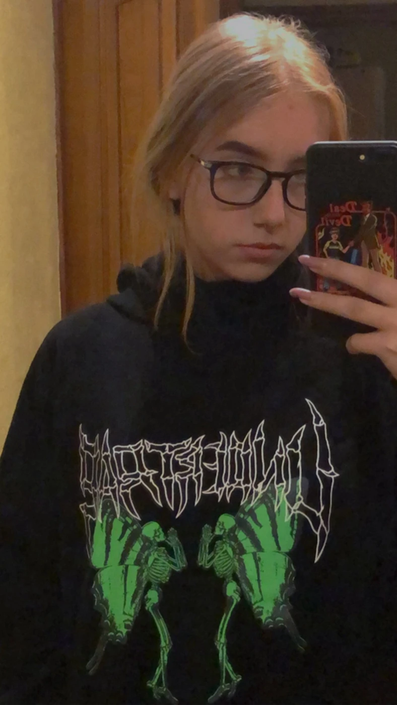 Женская толстовка оверсайз с принтом в виде бабочек и скелета