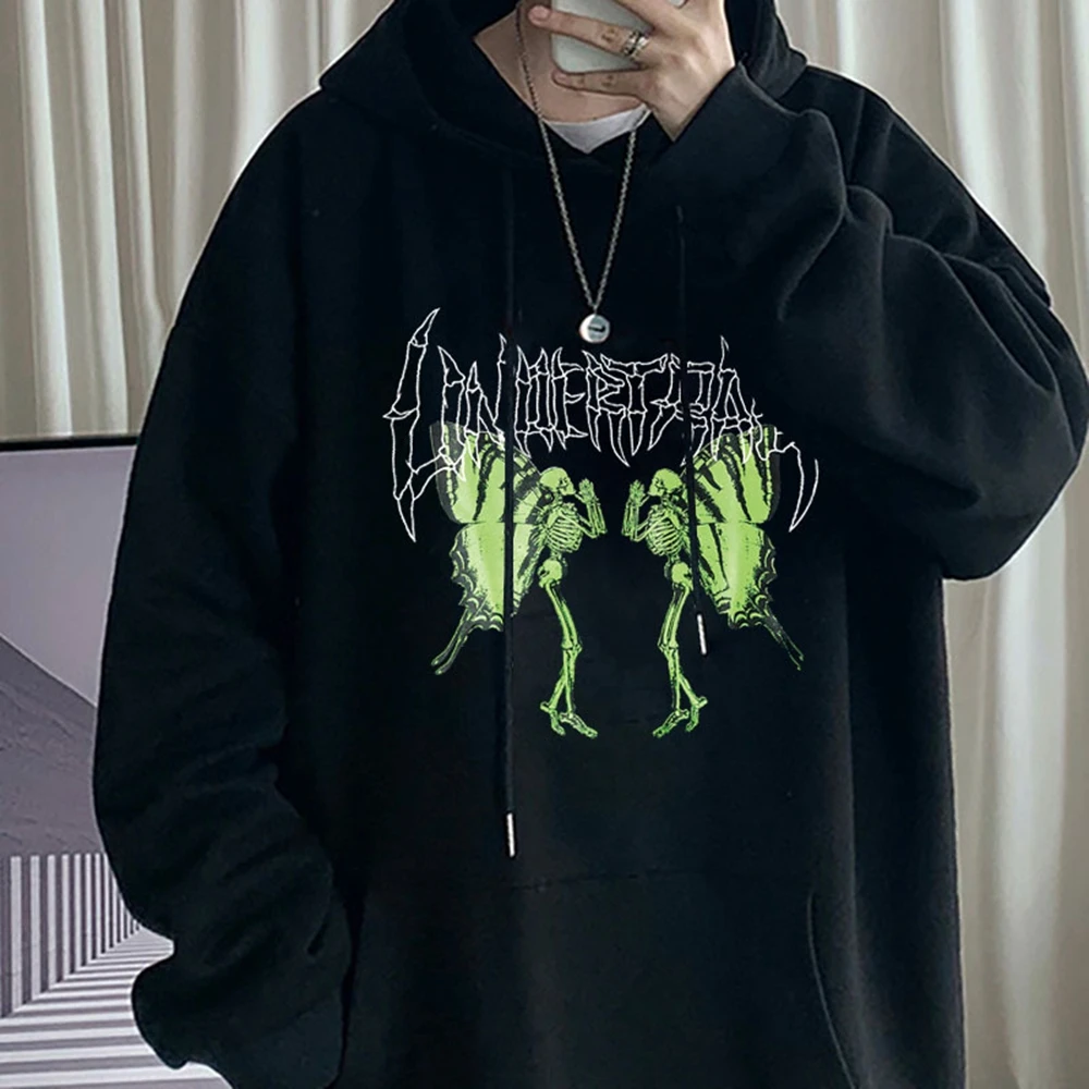 2021 новая толстовка с капюшоном мужская и женская Повседневная Толстовка Готический Череп Harajuku бабочка парная Толстовка