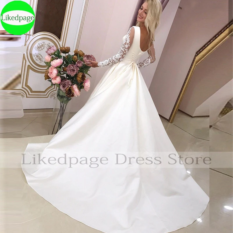 Свадебное платье из атласа, с V-образным вырезом и карманами, сваде...