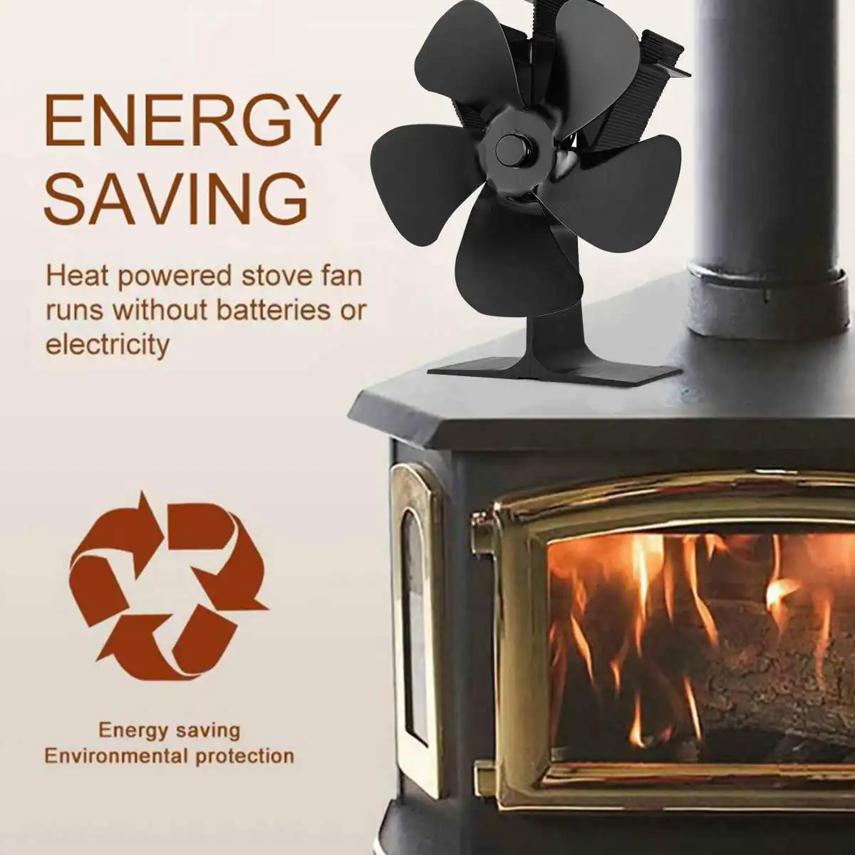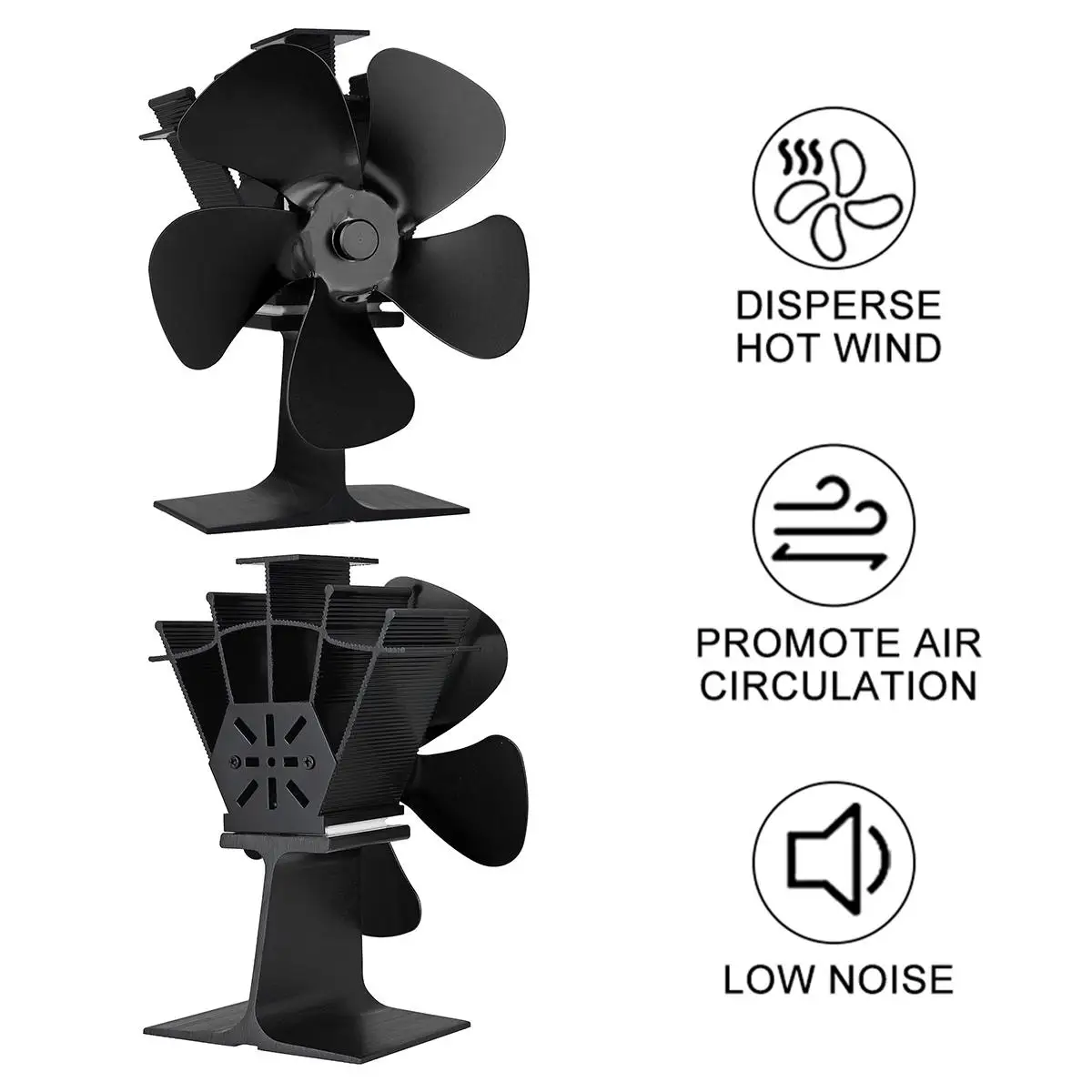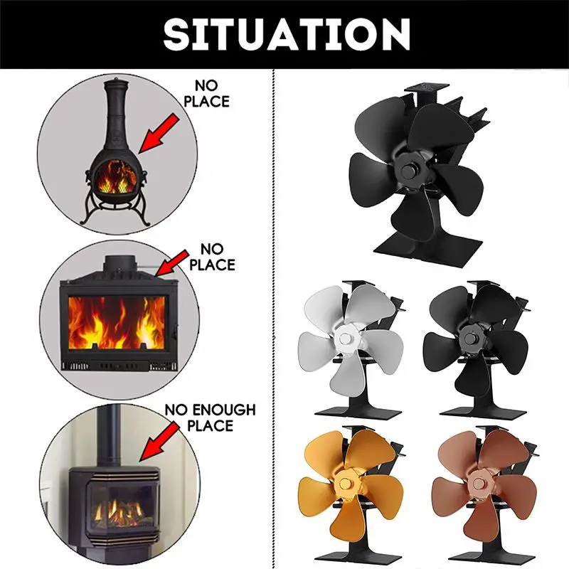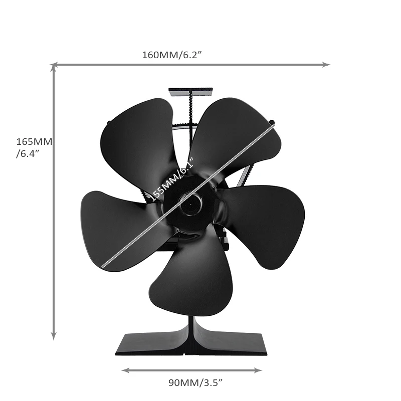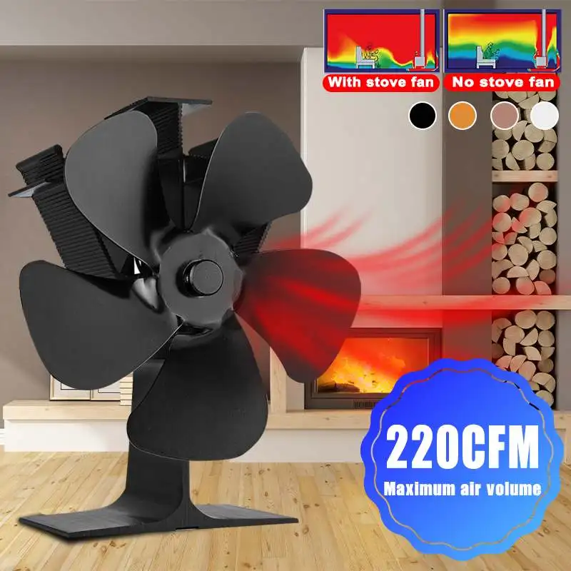 Черный вентилятор для камина 5 лезвий вентилятор для печи, работающий от тепловой энергии древесных бревен горелки эко тихий вентилятор Домашний Вентилятор для камина эффективное распределение тепла