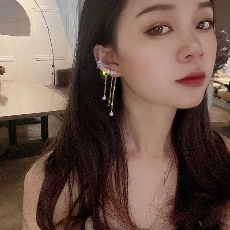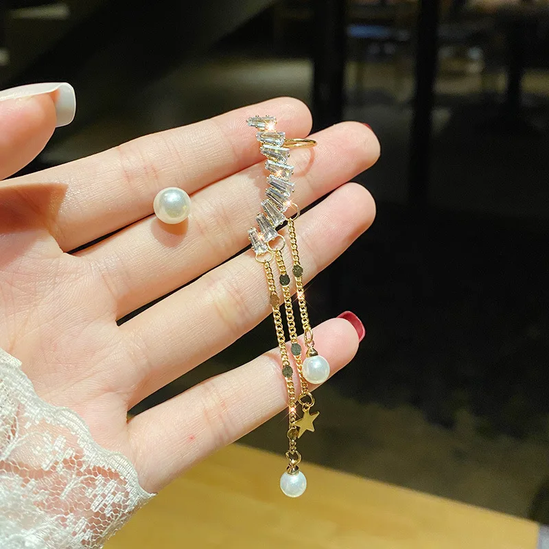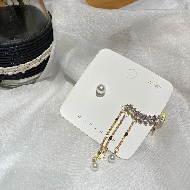 Женские асимметричные серьги в Корейском стиле, серьги-кисточки с имитацией жемчуга, модные украшения из циркония