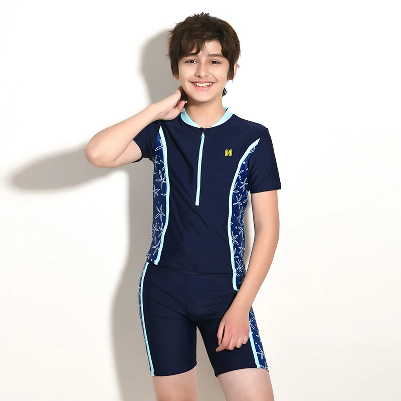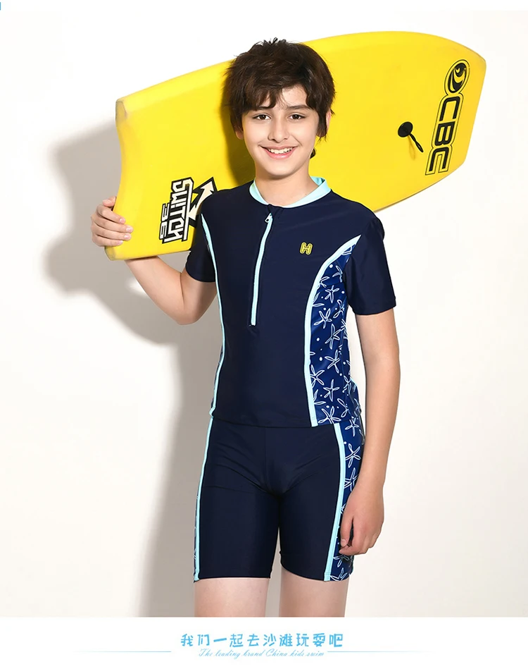 2021 Летний Новый детский купальник с коротким рукавом, костюм для серфинга, купальник для мальчиков, быстросохнущие плотные плавки, комплект из двух предметов