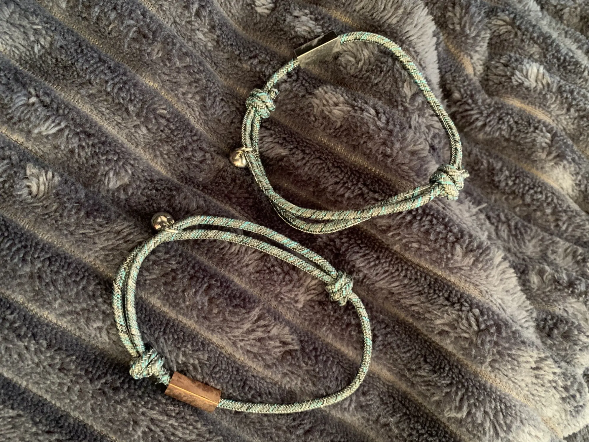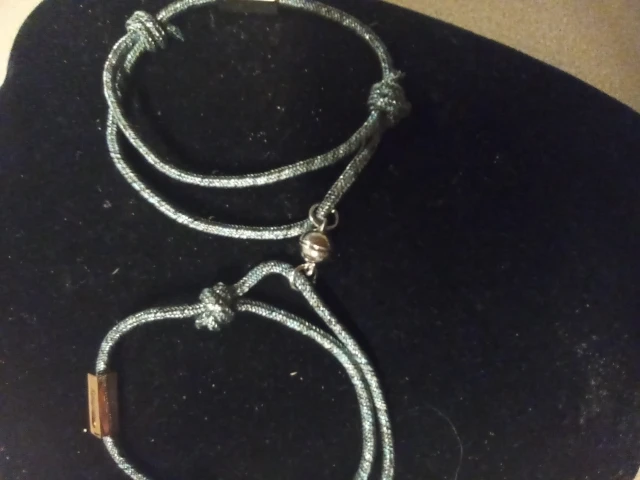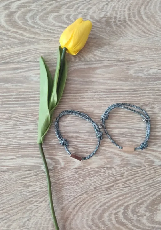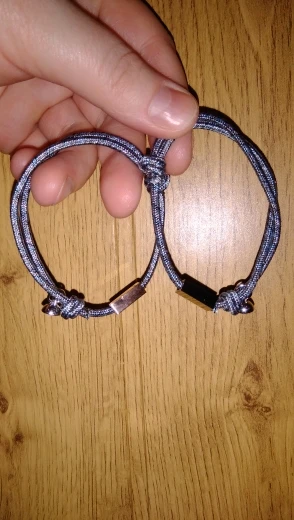 симпатичные браслеты, пришли с полным отслеживанием, сама веревка красивого цвета, качественная, магниты работают, по поводу гравировки имён не писала продавцу, думаю, возможность их сделать есть, можно утянуть на худую руку, и расширить на большую, вставка на одном браслете золотистая, на другом цвета серебра, магниты серебристые, продавца рекомендую