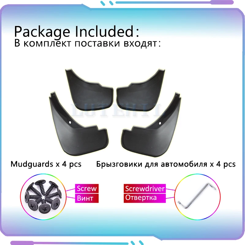 4 x брызговика, 1 x отвертка, сумка для фиксации винтов