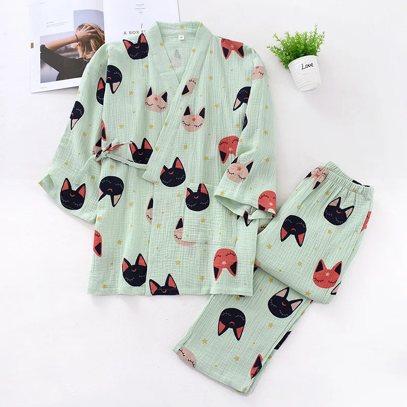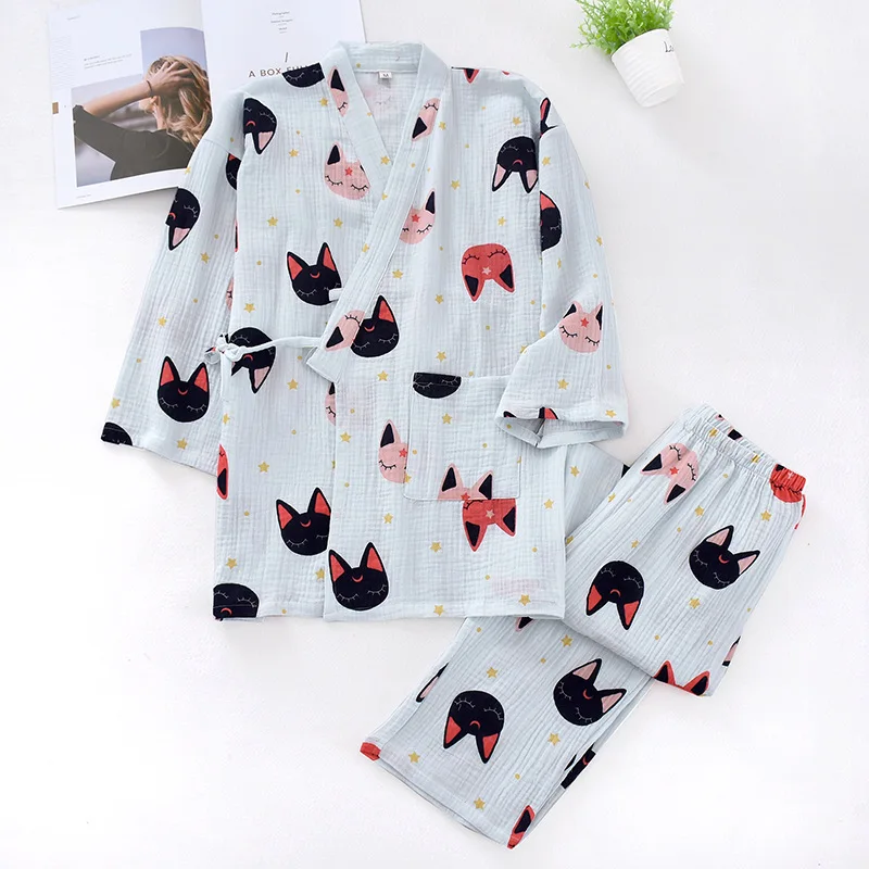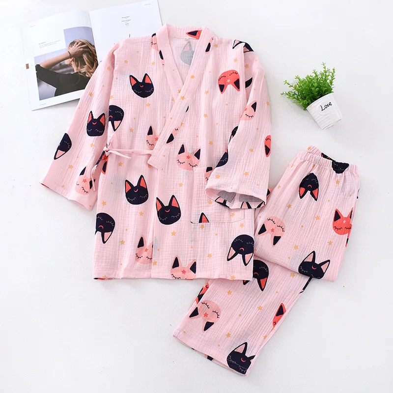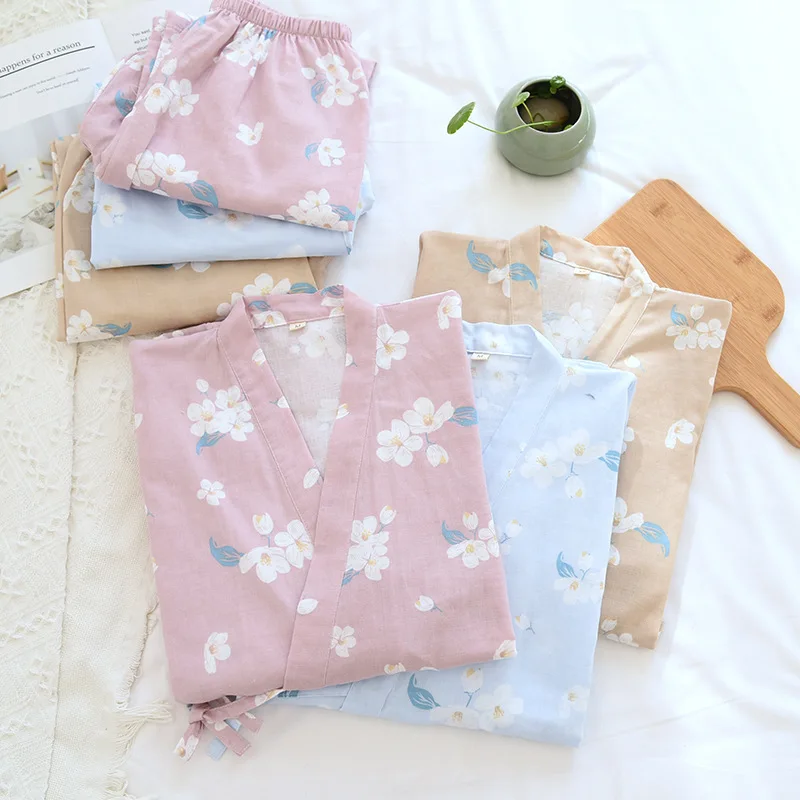 Пижама-кимоно Женская в японском стиле, тонкий хлопковый газовый ко...