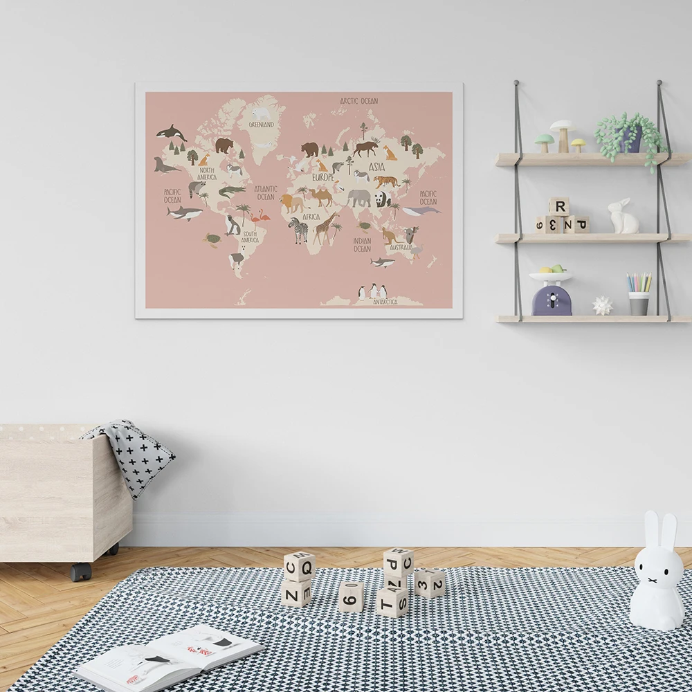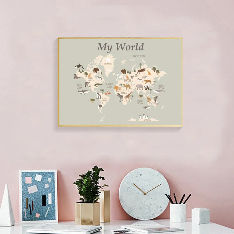 Развивающие животных карта мира Картина детей плакат для детской на...