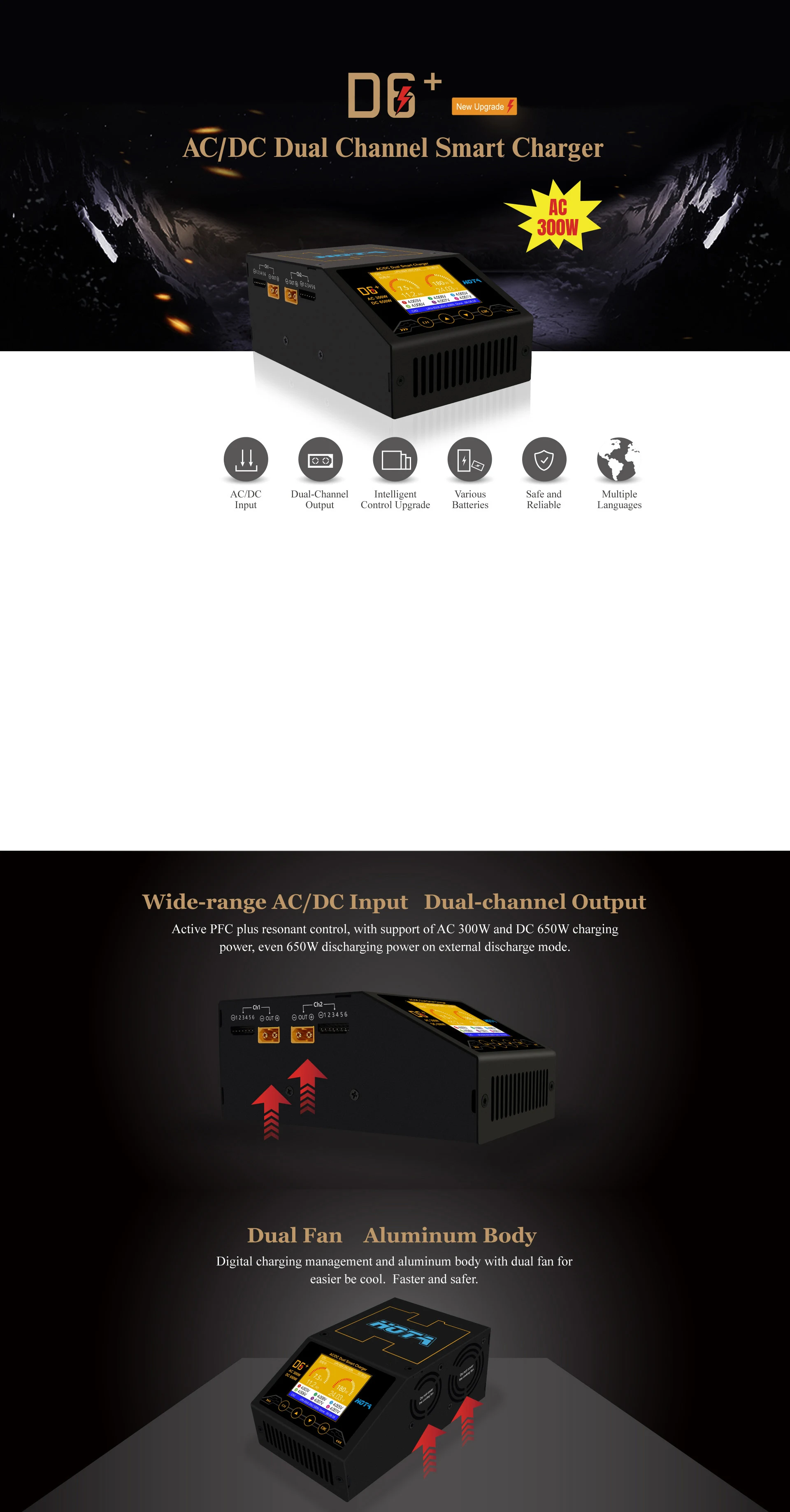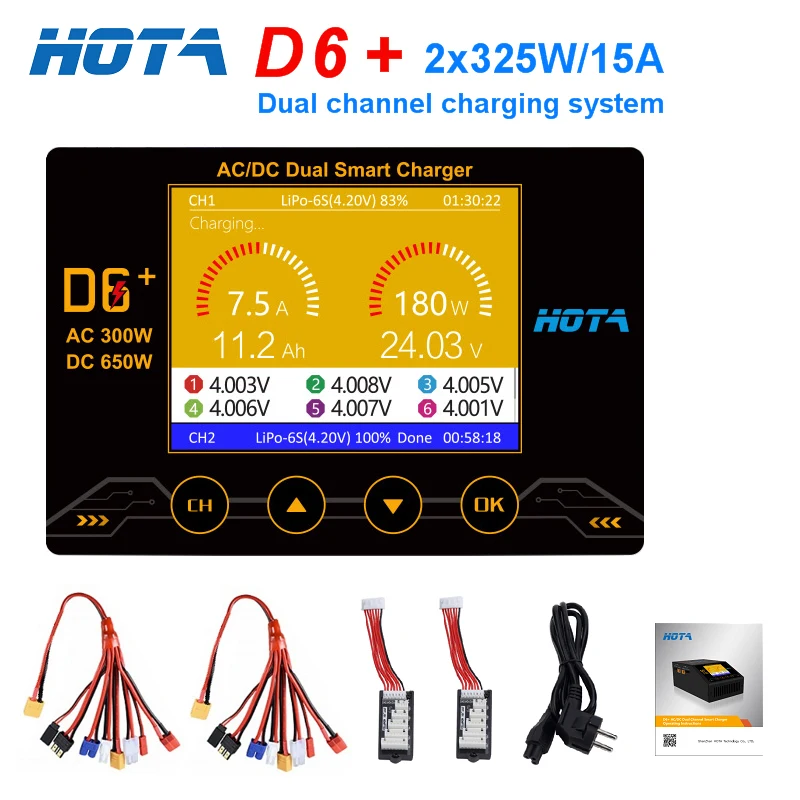Двухканальное умное зарядное устройство HOTA D6 + plus, 300 Вт, 2x325 Вт, 2x15 А