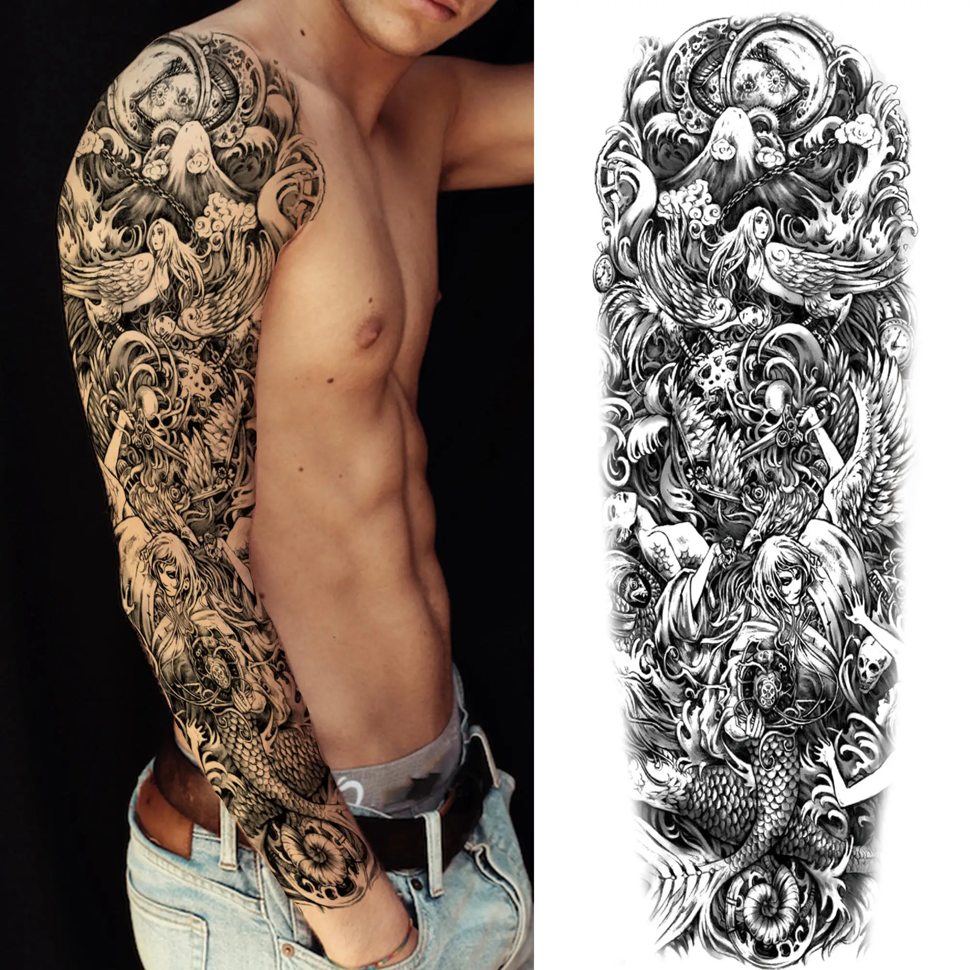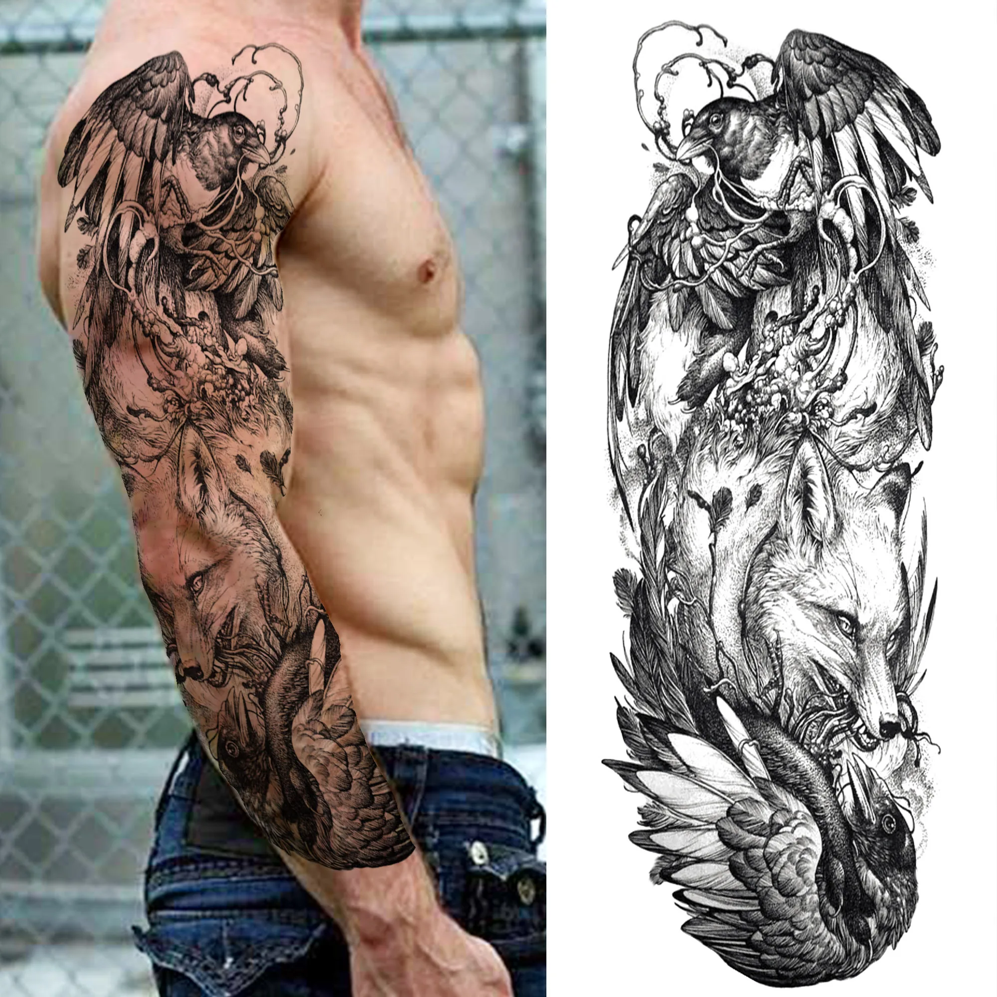 Племенной Лев Бог временная татуировка рукав для Для мужчин взрослых Реалистичный искусственный компаса орел тату передачи полная перчатки защита от ультрафиолетовых лучей Стикеры