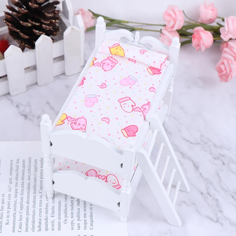 1:12 миниатюрный кукольный домик, модель Furniature, миниатюрная Двухуровневая кукольная кровать, Декор, детская игрушка для ролевых игр