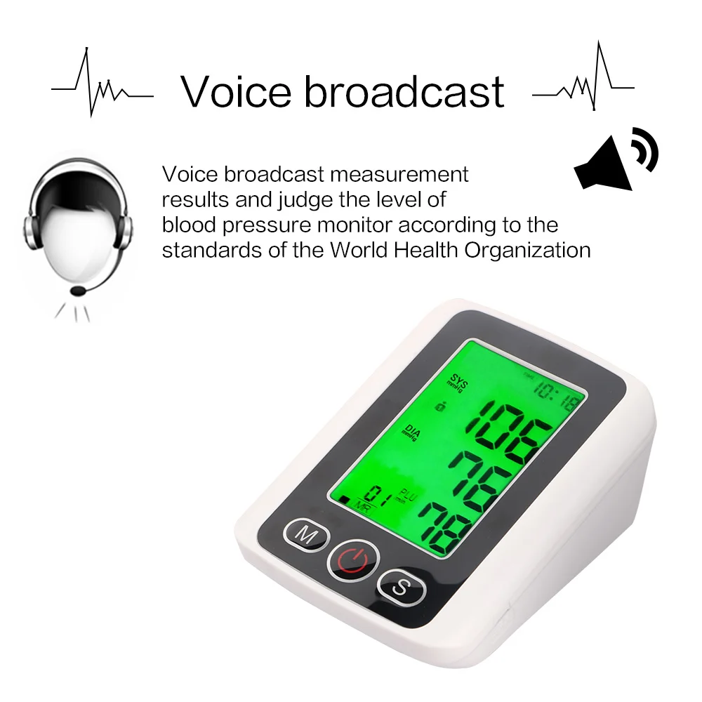Цифровой монитор артериального давления тонометр верхней руки портативный измеритель кровяного давления Автоматический Сфигмоманометр Tensiometro. Монитор артериального давления, тонометр, сфигмоманометр, Tensiometro, измеритель артериального давления. Цифровые ручные тенсиометры, измерительный тонометр давления, tensiometro presion arterial Особенности: -Гарантия качества, рекомендованная профессиональными врачами, проста в эксплуатации -Большой экран показывает, удобно для пожилых людей -- Доступны две длины манжет, 22-32 см, 22-48 см. Сильные толпы могут выбрать большой манжет -- 2X99 данные памяти для легкого мониторинга колебаний артериального давления -- Методы зарядки: батарейки AAA -- Напоминание о нерегулярном импульсе Характеристики: 1. Измерьте суставы рук 2. Простота в эксплуатации 3. Автоматическое измерение 4. Память 99 групп 5. Запрос данных памяти в последовательности 6. ЖК-дисплей HD 7. Операция автоматически отключается в течение 1 минуты без операции 8. Точность: Артериальное давление ± 3% Пульс ± 5% 9. Диапазон измерения: Артериальное давление 0 ~ 280 мм рт. Ст. Пульс 40 ~ 199 раз/мин 10. Английский Голос Посылка включена (рука): Сумка Pacakge × 1 Английская Голосовая машина × 1 Манжета для измерения артериального давления × 1 Руководство пользователя на английском языке x 1 Розничная коробка x 1 Посылка включает в себя (запястье): Руководство пользователя на английском языке x 1 Артериальное давление на запястье x 1 Жесткая защитная коробка x 1 Розничная коробка x 1