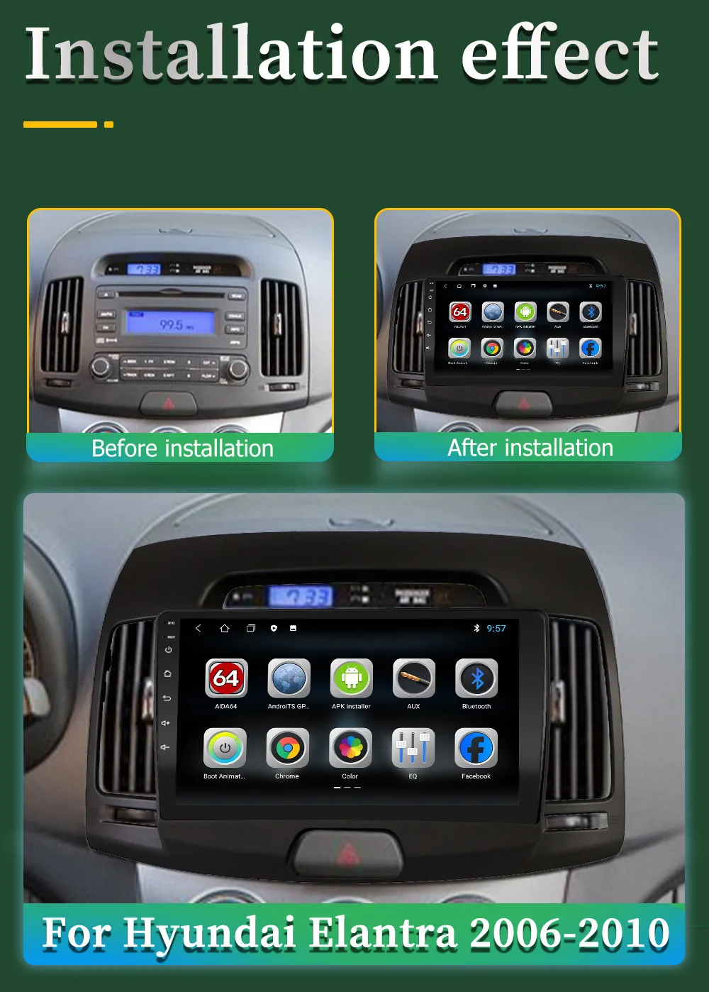 Автомагнитола, мультимедийный проигрыватель для Hyundai Elantra 2006, 2007, 2008, 2009, 2010, 2011, 2012, Android 10,0, DSP, 8 ядер, с радио, навигацией