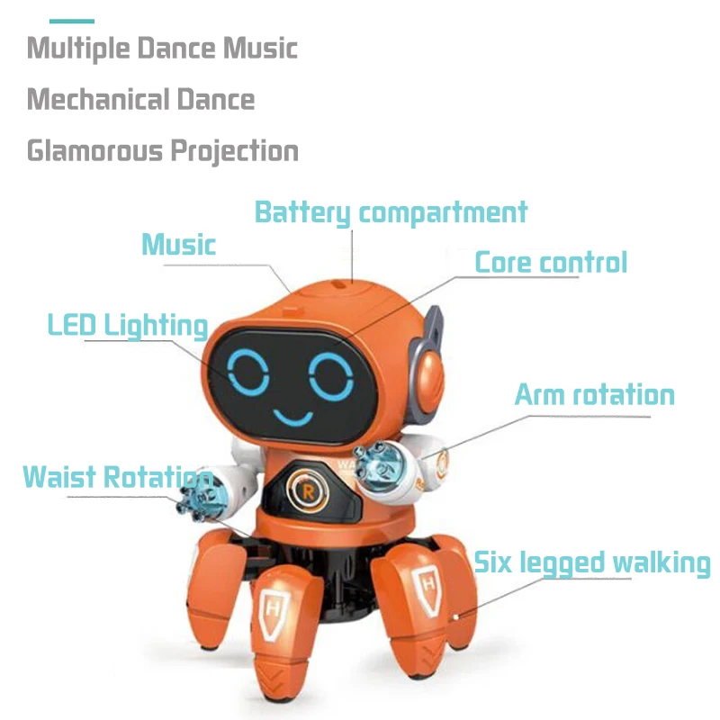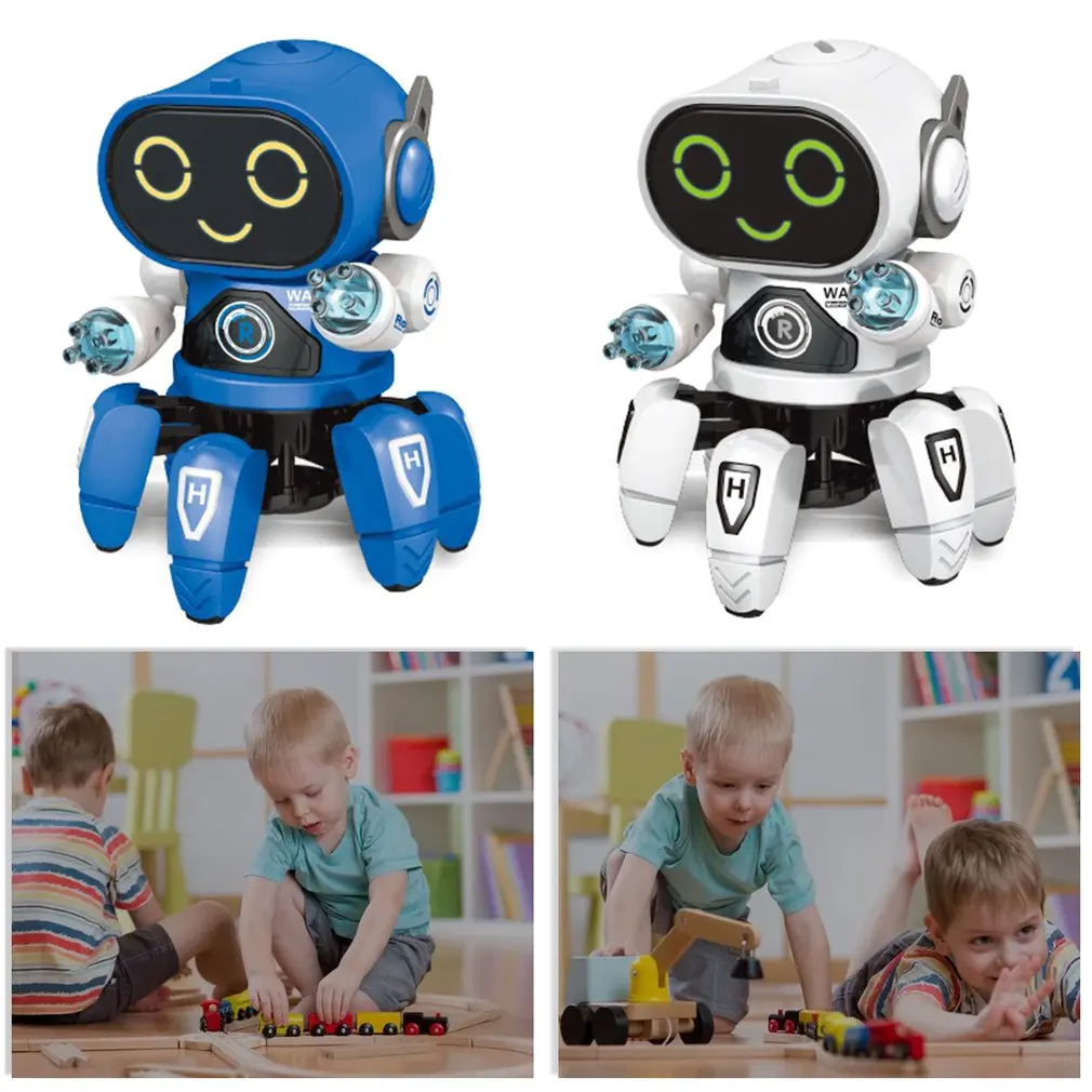 Умный танцевальный робот, электронный танцевальный робот с шестью крапанами со светодиодной музыкой, робот-осьминог, игрушки для мальчиков, детей, подарок на день рождения