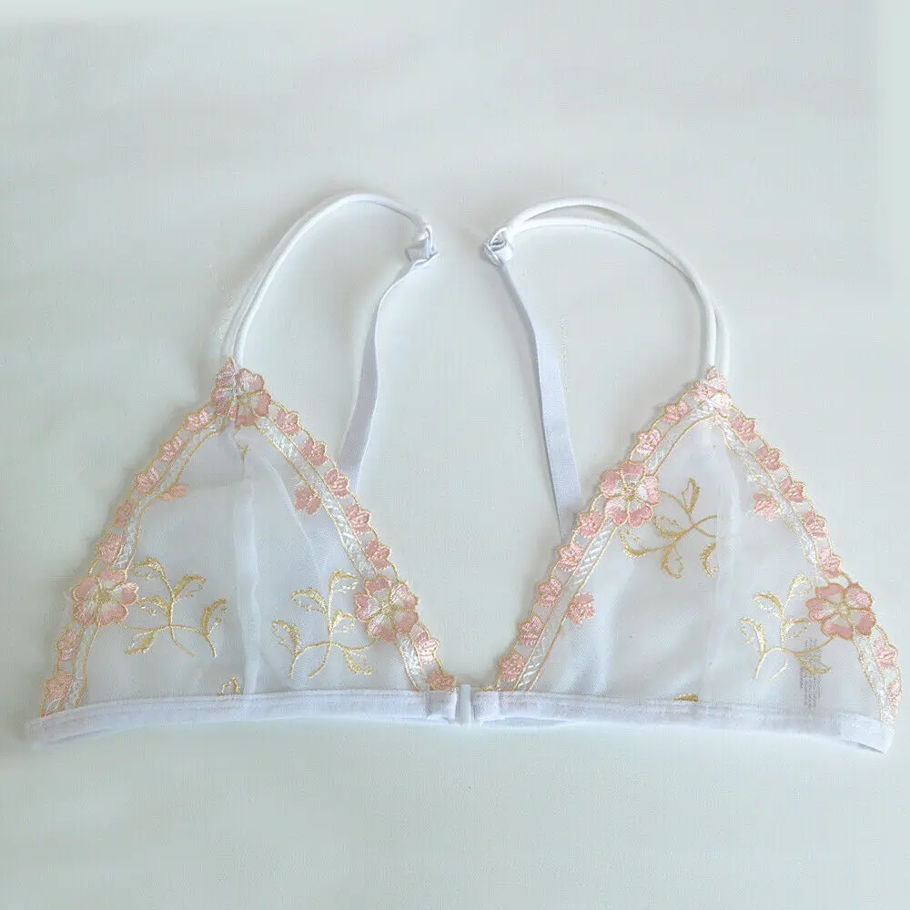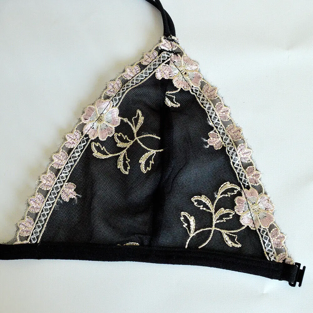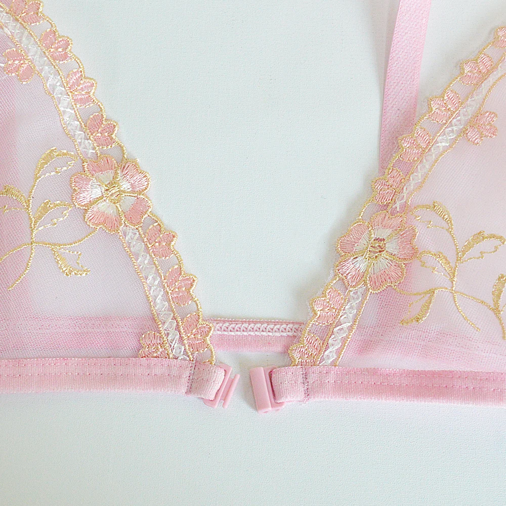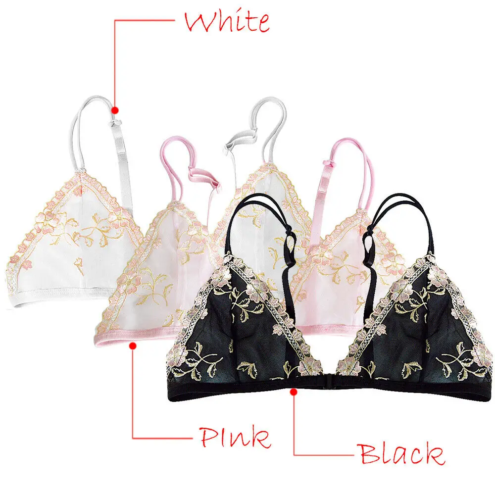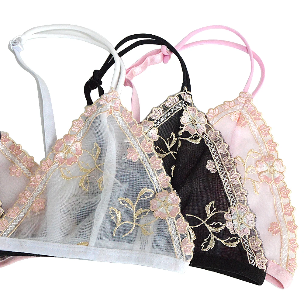 Бюстгальтер женский сетчатый, треугольный, с цветочной вышивкой, 3 ...