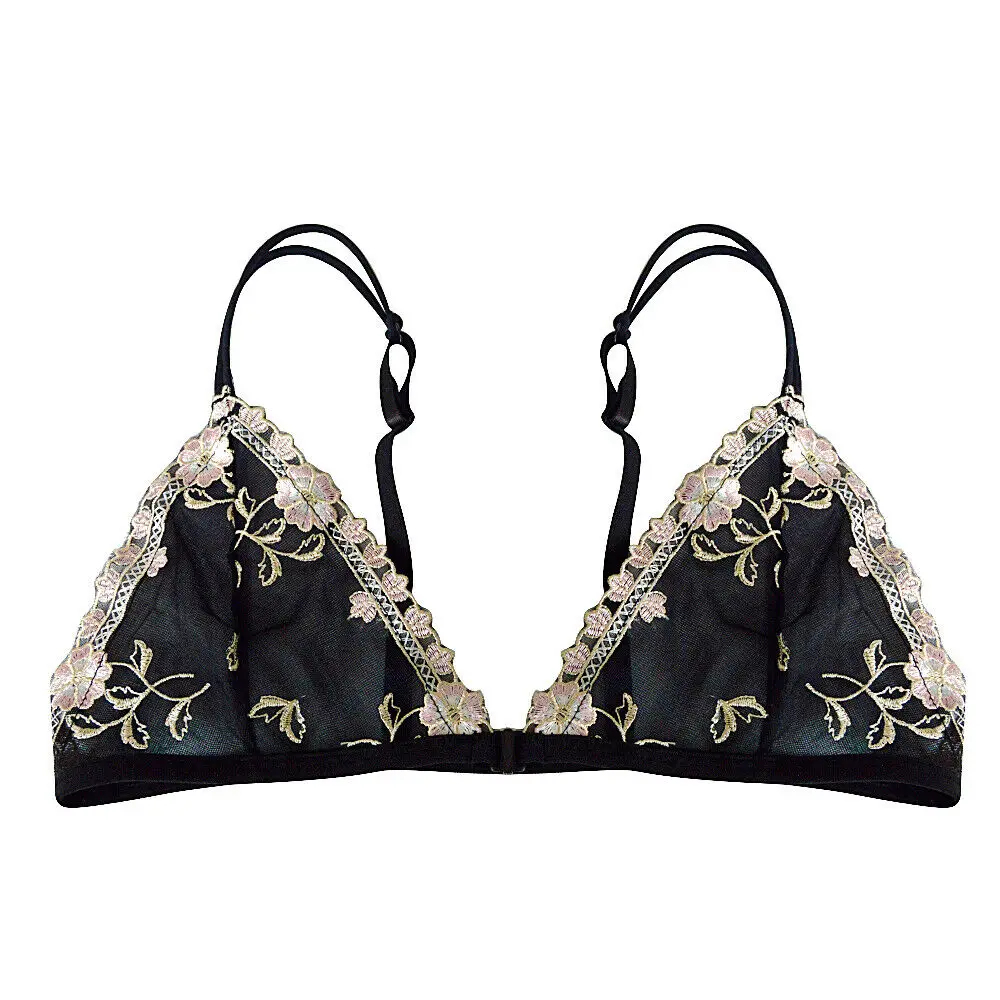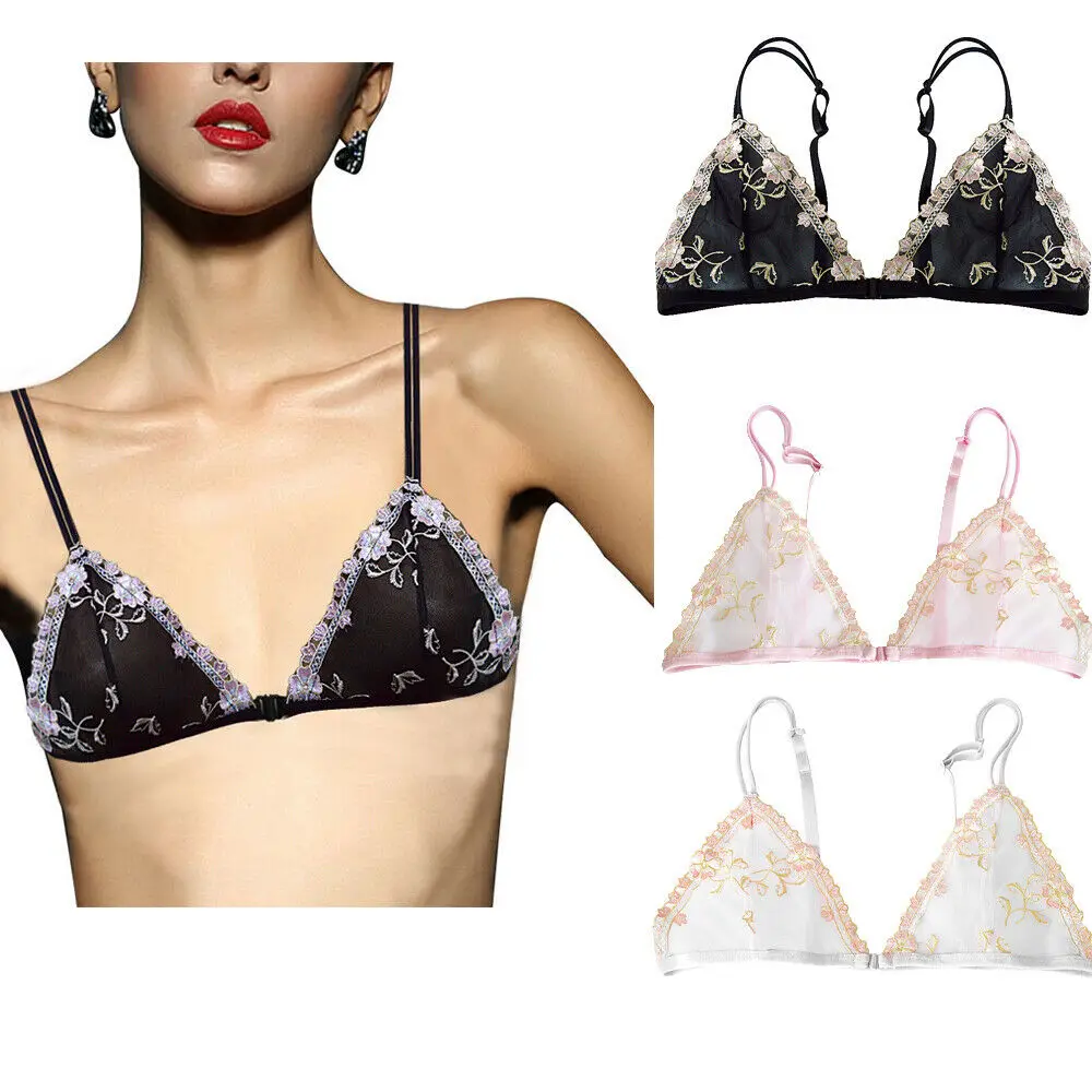 Сексуальный кружевной бюстгальтер Vgplay с треугольными чашками, Прозрачный женский бюстгальтер, ультратонкие бюстгальтеры с цветочным рисунком для маленькой груди, женское нижнее белье с застежкой спереди