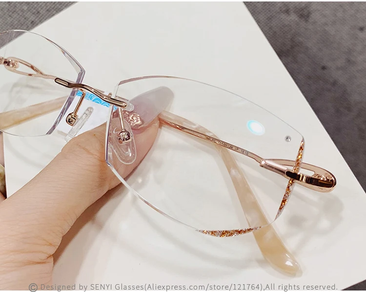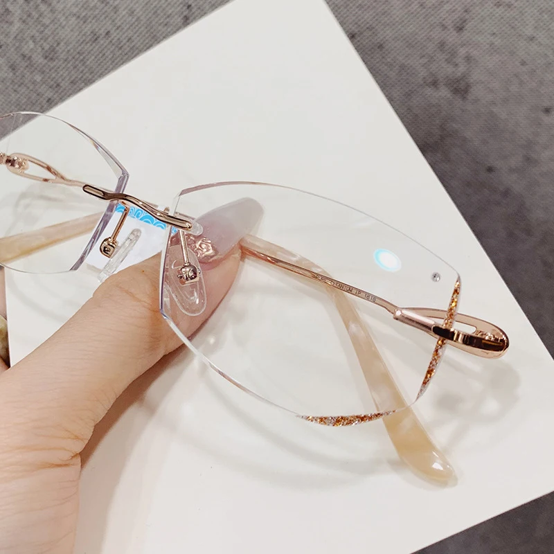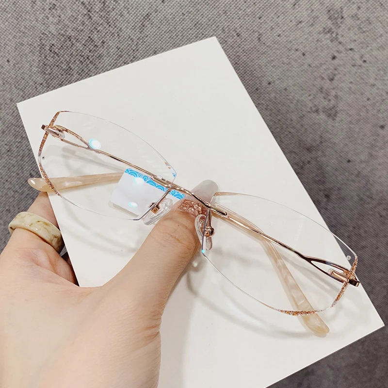 Женские титановые очки для близорукости Bluelight, без оправы, по рецепту, для чтения, с алмазной резкой, блокировка по рецепту