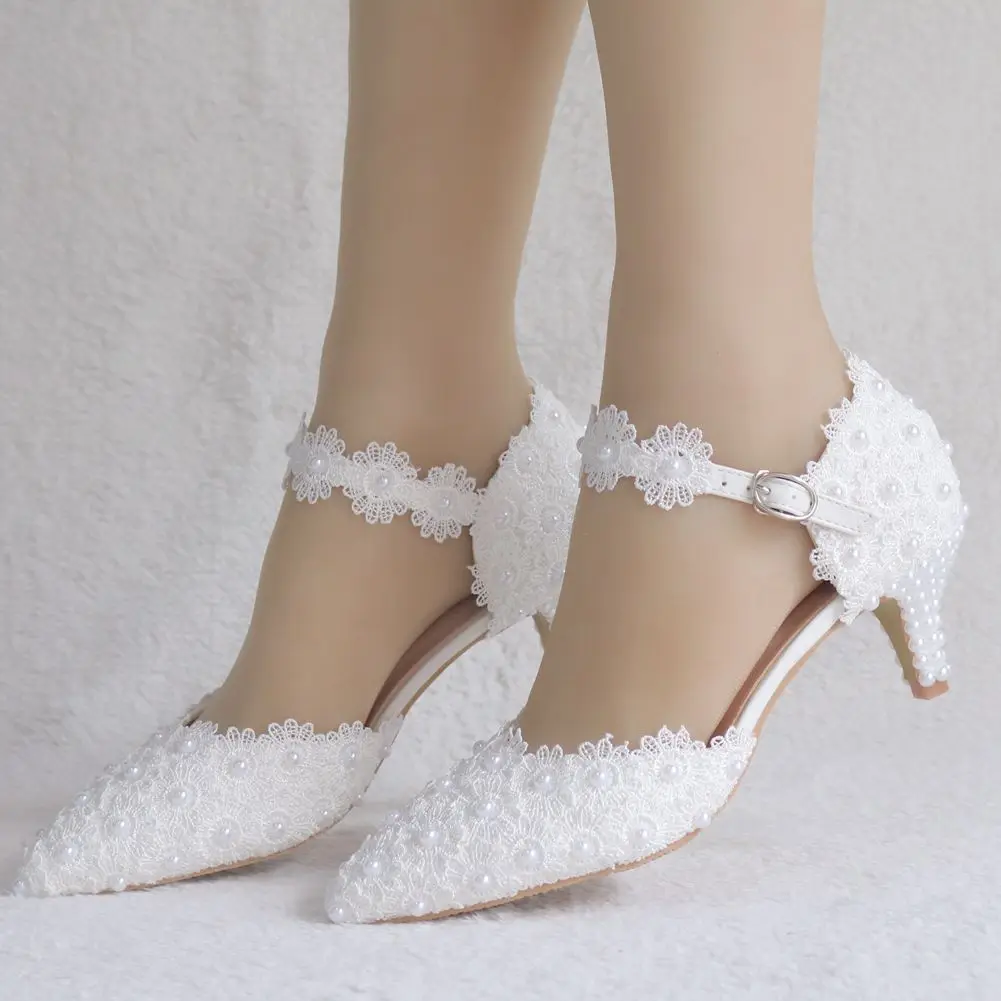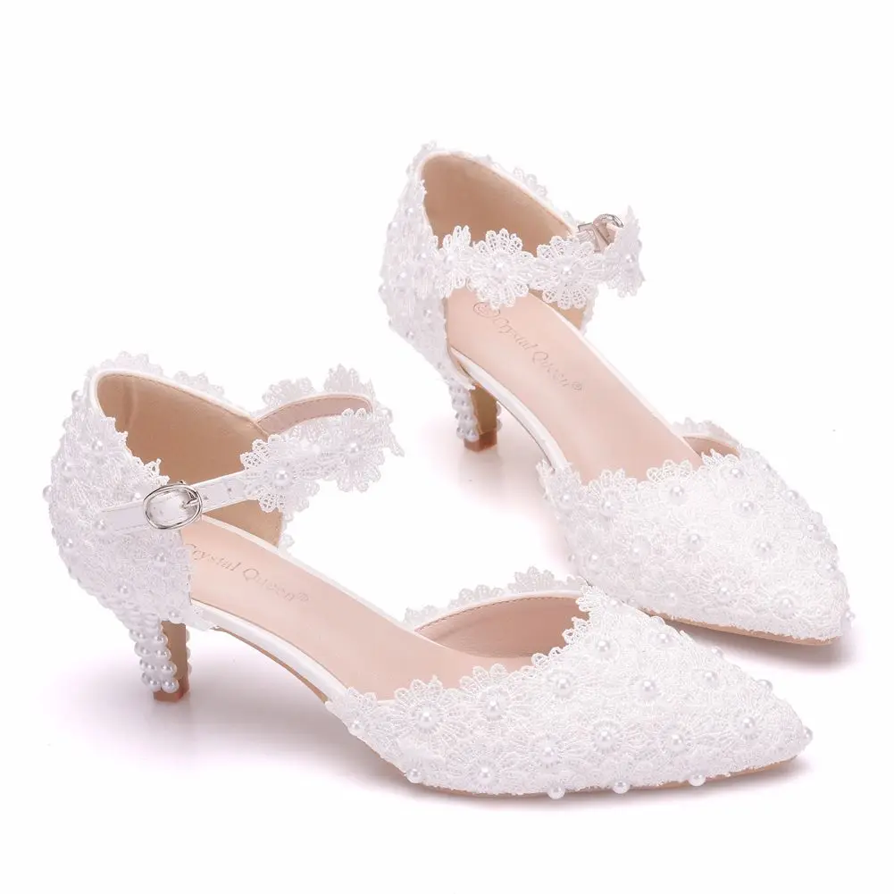 5 см белые кружевные остроносые босоножки на невысоком каблуке размера плюс сандалии женские международная торговля кружева свадебные туфли обувь для невесты