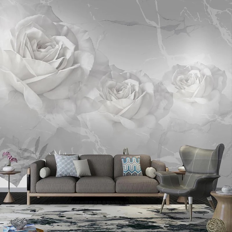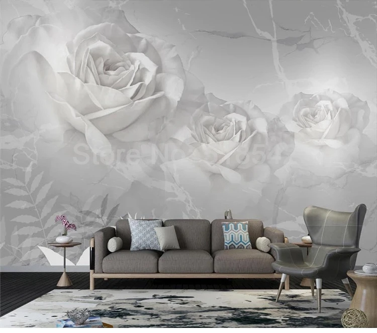 3D-обои на заказ, современные настенные росписи с белыми мраморными цветами розы для фотографирования гостиной, дивана, фона под телевизор, Декор для дома
