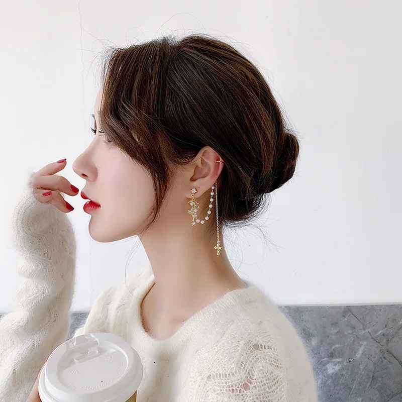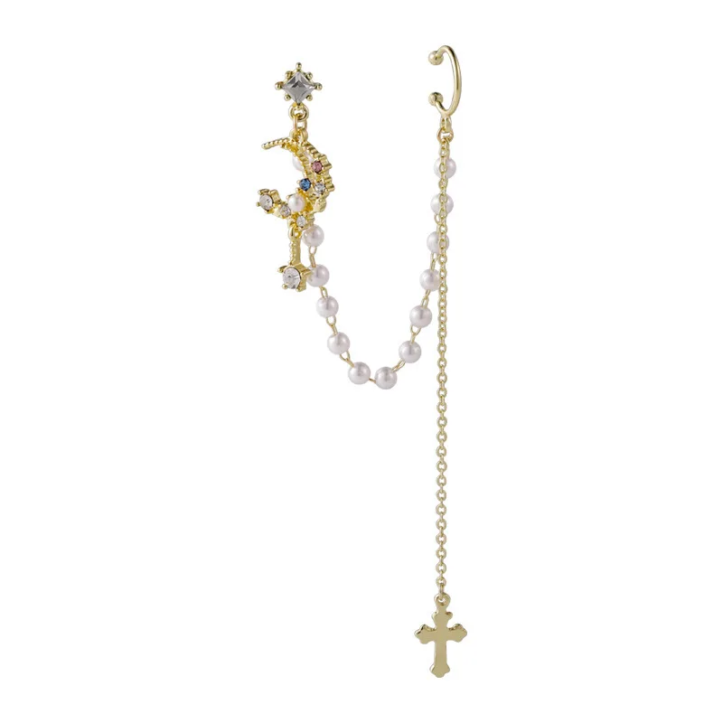 MWSONYA Модный корейский Крест Подвеска Серьги Цепочка жемчуг Клипсы Серьги-Крючки для ушей месяц серьги женские аксессуары вечерние подарки