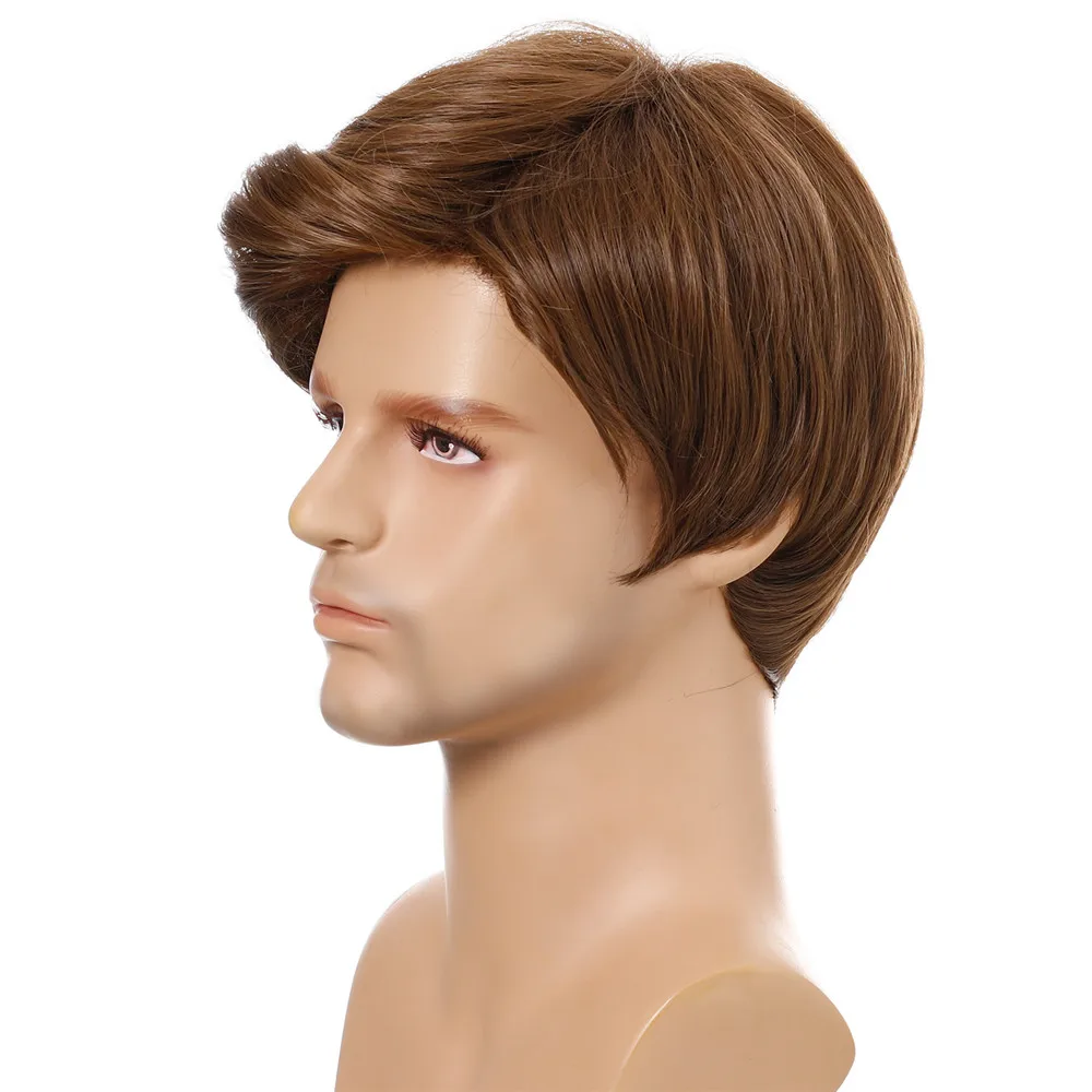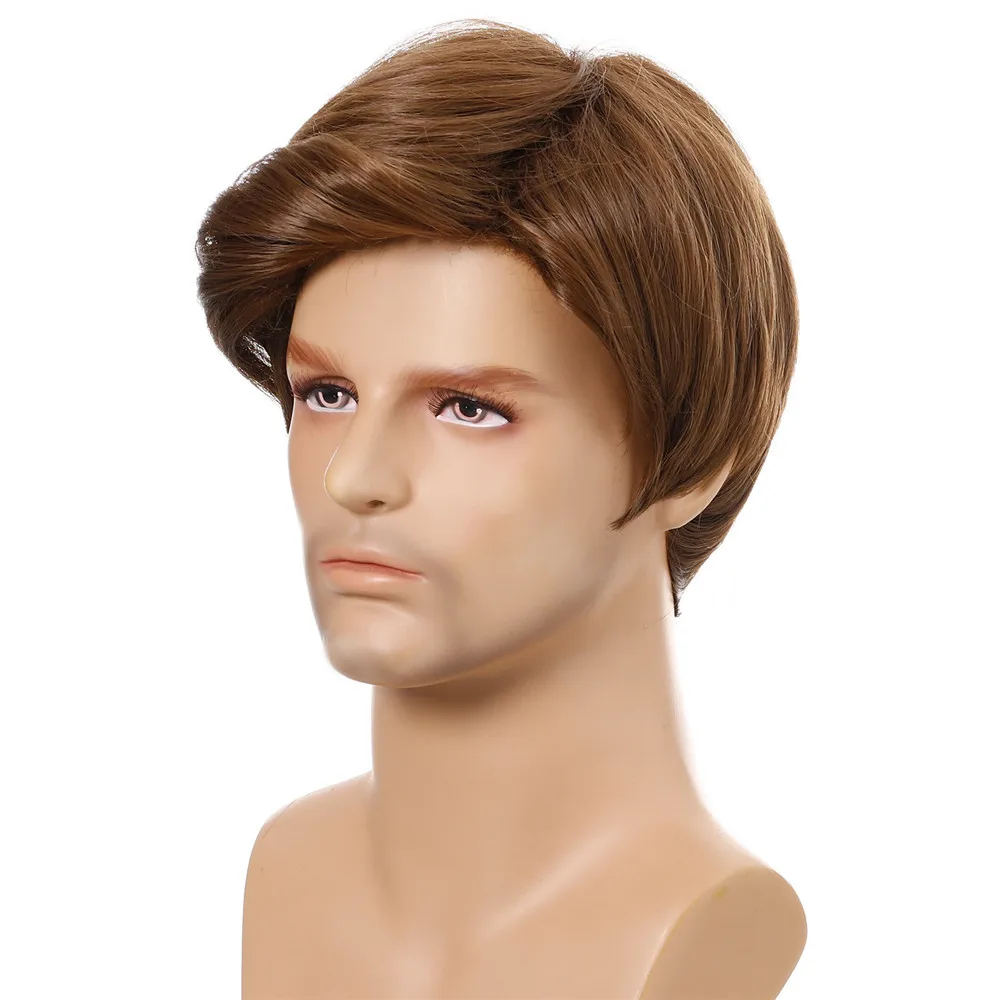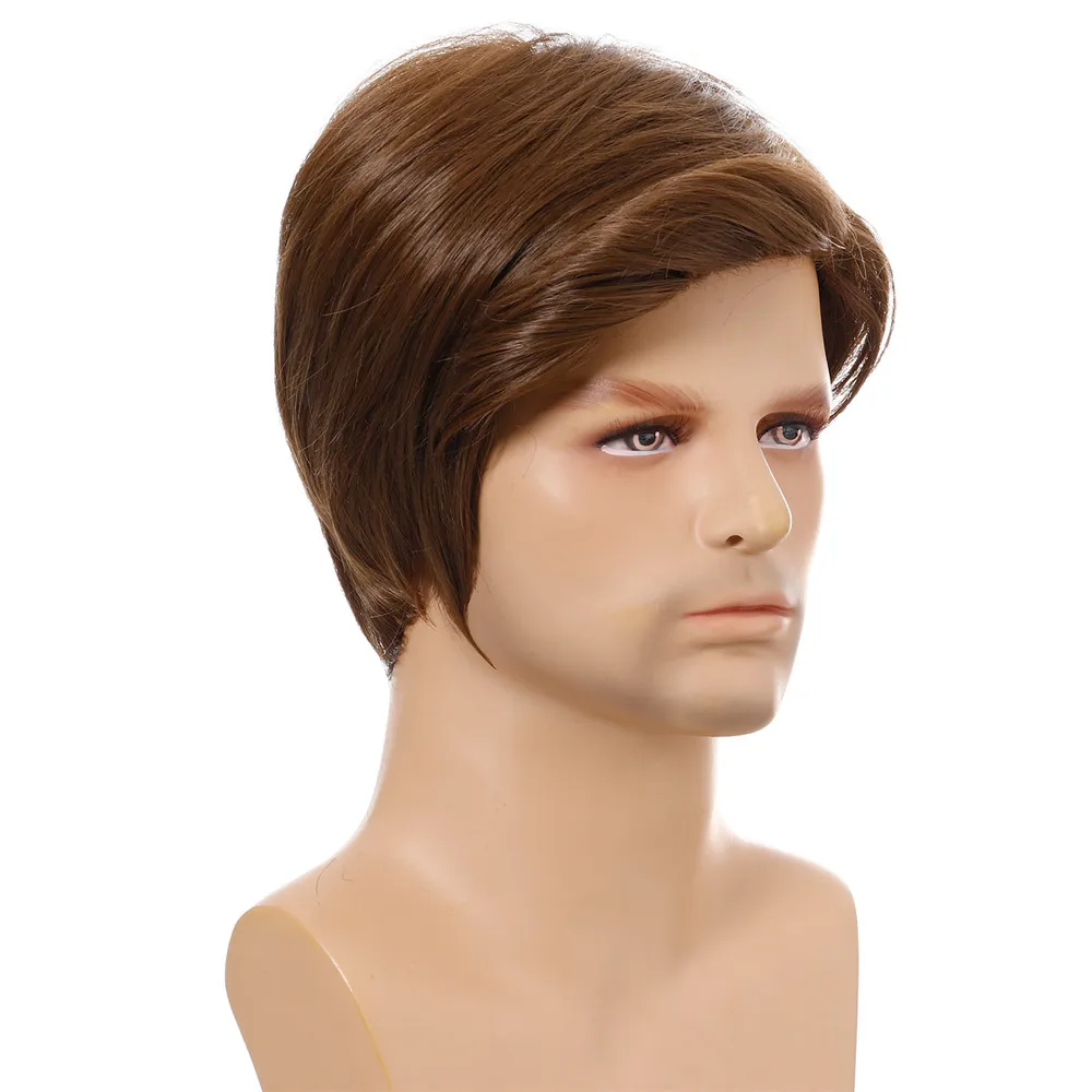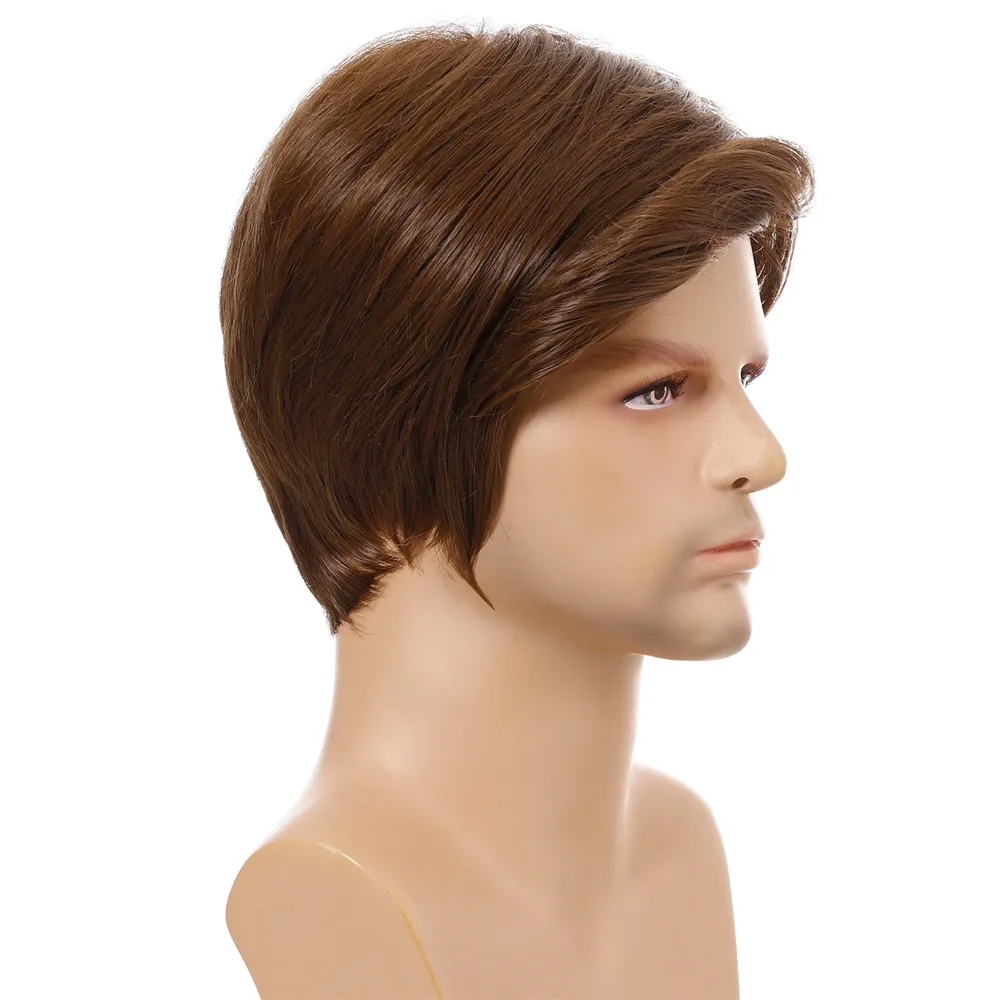 Мужские короткие натуральные коричневые прямые парики для мужчин, повседневный парик с челкой, натуральный вид, термостойкие дышащие