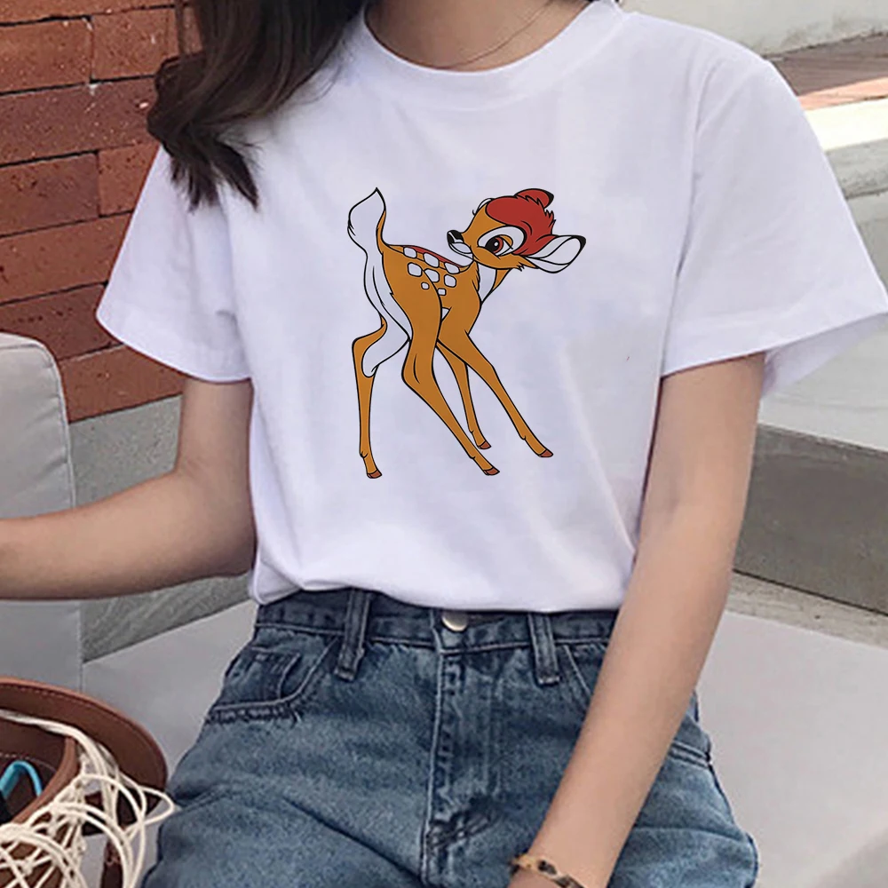 Футболка женская белая с коротким рукавом и бабочками, Олень Бэмби