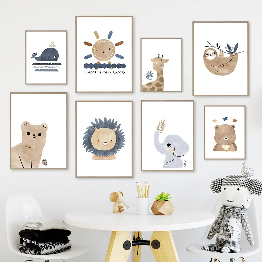 Милый лев тигр жираф зебра мультфильм скандинавские плакаты и принт...